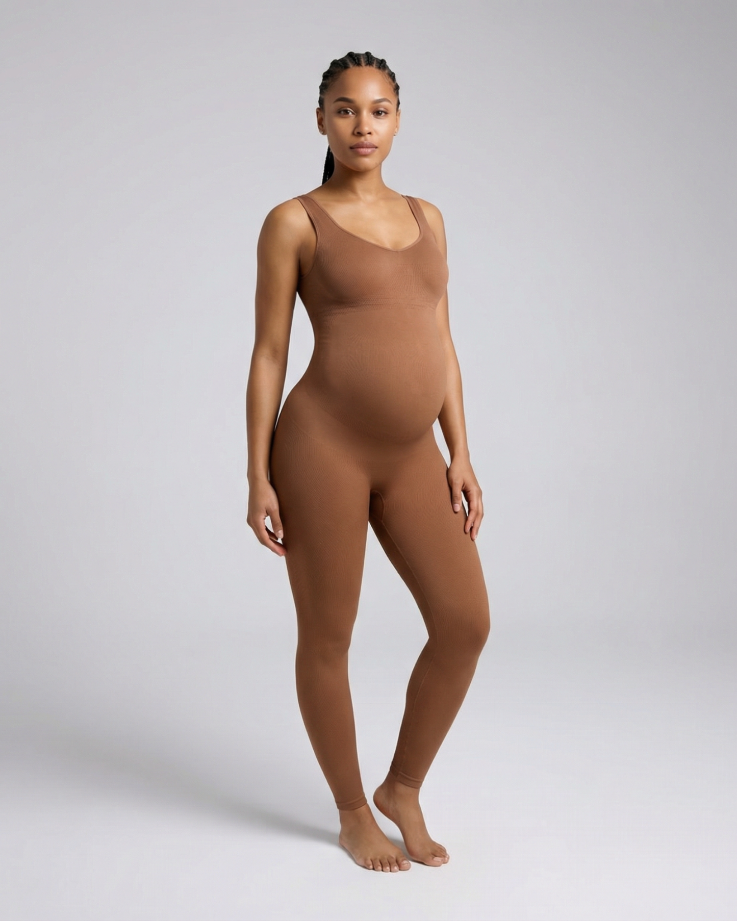 Experience all-day comfort and gentle support with our Alyssa Maternity Jumpsuit. Designed to adapt to your growing baby bump, this seamless, full-body maternity jumpsuit offers light compression without restricting movement. Ideal for layering or wearing solo, it smooths and shapes while keeping you supported through every trimester. Perfect for moms-to-be who want style, comfort, and confidence, in one must-have maternity essential.