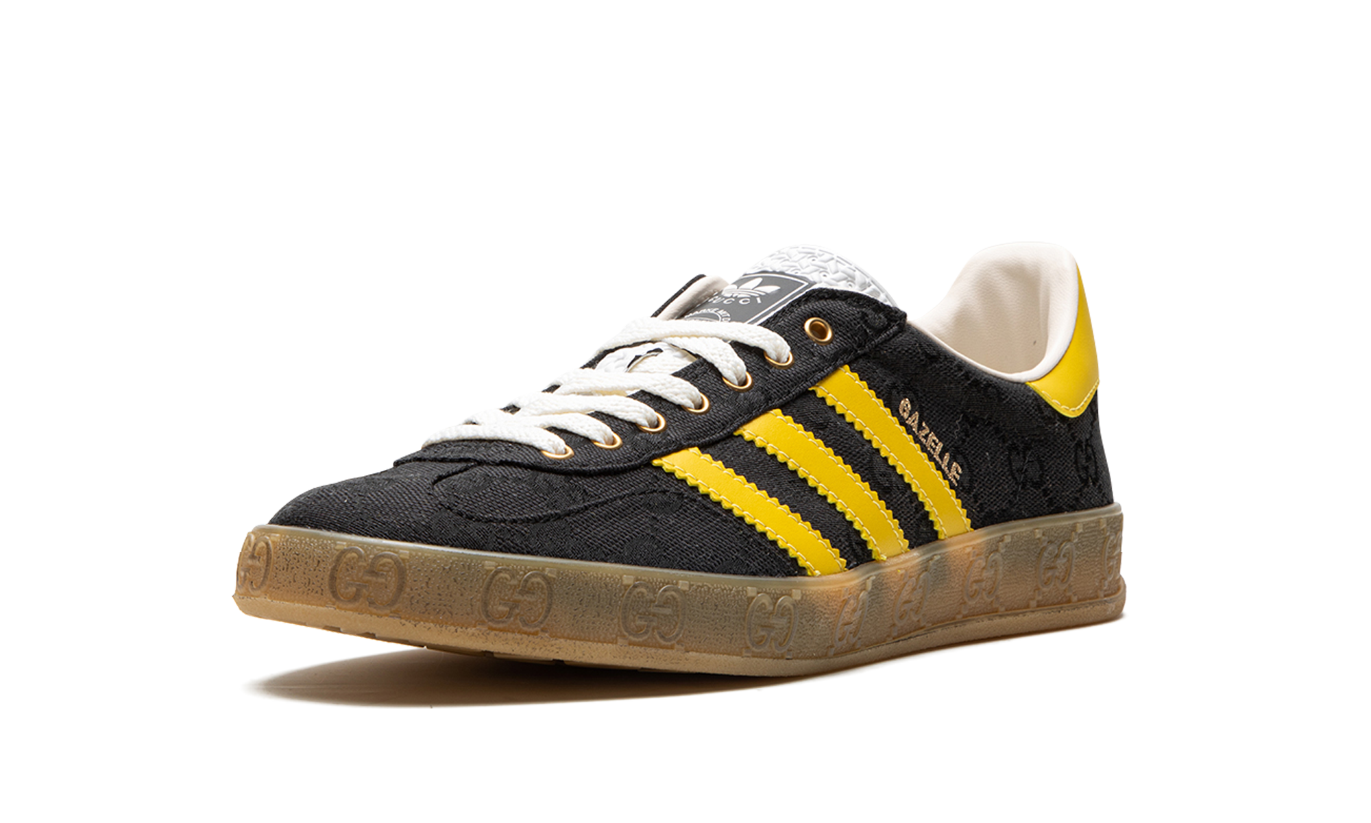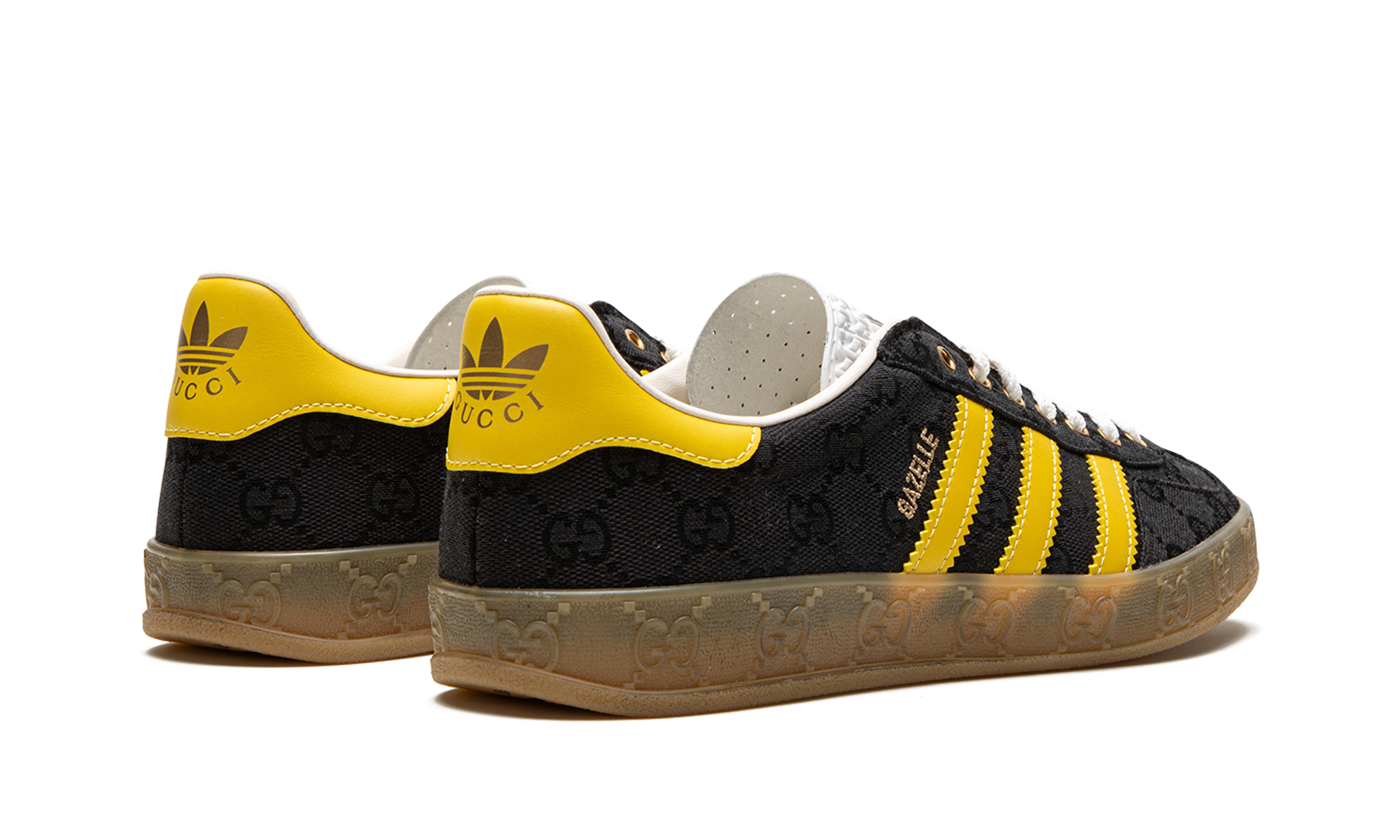 The Gucci x adidas Gazelle “Black/Yellow” is one of several limited edition colorways of the retro shoe from the collaboration between the legacy high fashion brand and adidas. Marking the second-ever collaboration between Gucci and adidas, the Gazelle in “Black/Yellow” updates the versatile sneaker with Gucci’s iconic “GG” monogram patterning in an all-over style that draws favorably from 1980s-era sportswear. The shoe features yellow leather Three Stripes branding on the sides that contrasts the black canvas upper with “GG” monogram print. Co-branding is located on the tongue. “GG” embossed branding is found along the gum rubber midsole. Release date: March 31, 2023