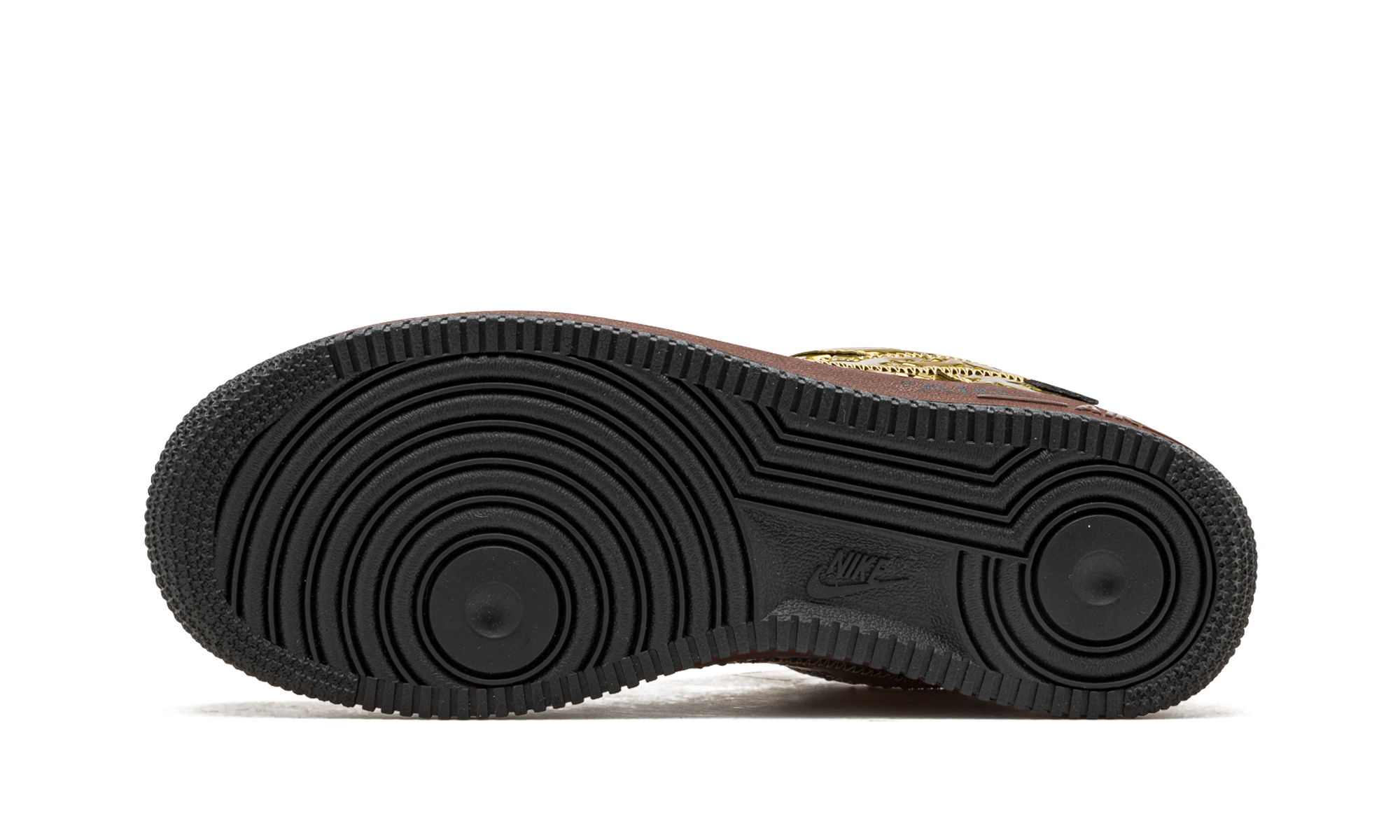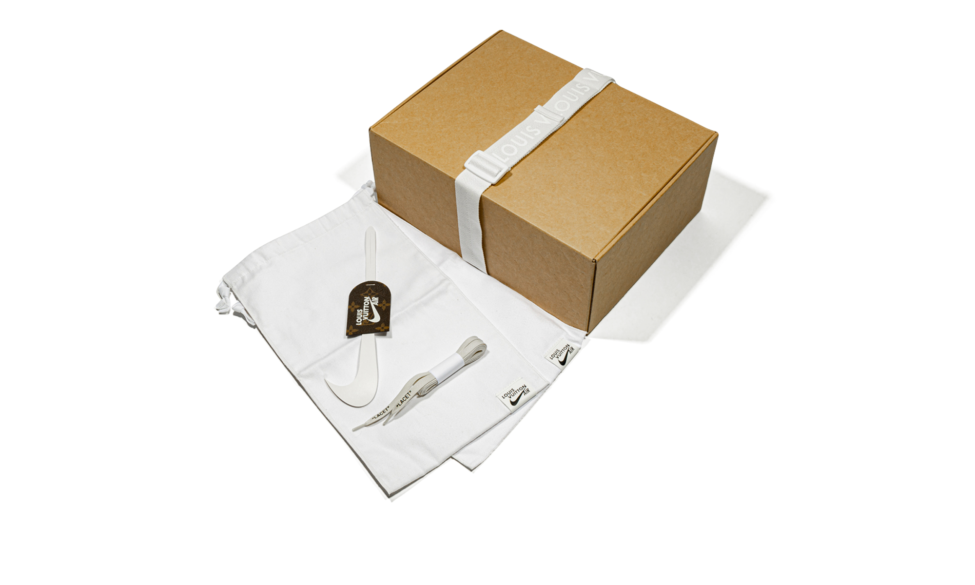 The Louis Vuitton x Nike Air Force 1 Low “Metallic Gold is the coveted golden colorway included in the special collaboration between the storied high fashion house and Nike that was directed by the late Virgil Abloh. One of multiple colorways of the Air Force 1 produced by Louis Vuitton, Nike, and Abloh in 2022, the “Metallic Gold” features a monochromatic gold leather upper with Louis Vuitton’s famous monogram print stamped into the material. A stitched Swoosh outline appears on both sides of the shoe. Signature details include a reworked “Louis Vuitton Air Force 1” logo on the side of the tongue, and a brown tab on the lateral side of the Swoosh on the mid-panel. The shoe rides on a brown rubber sole. Made in Italy. Virgil Abloh - Metallic Gold