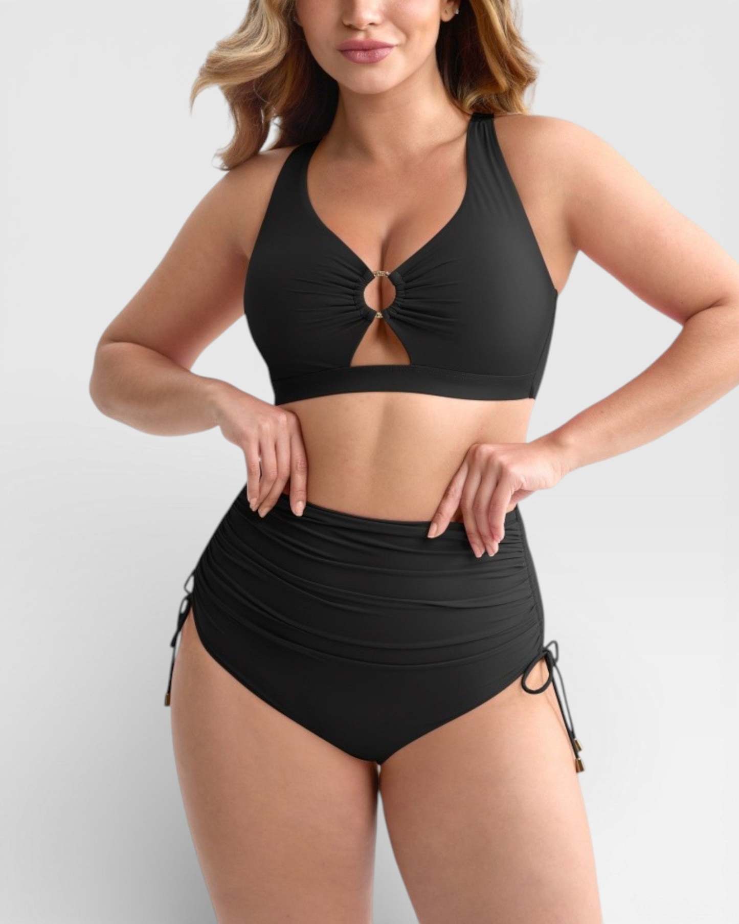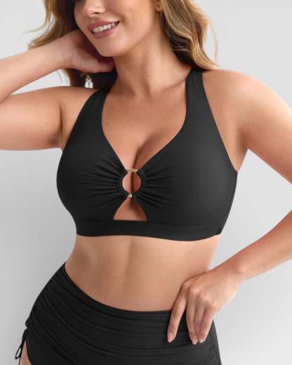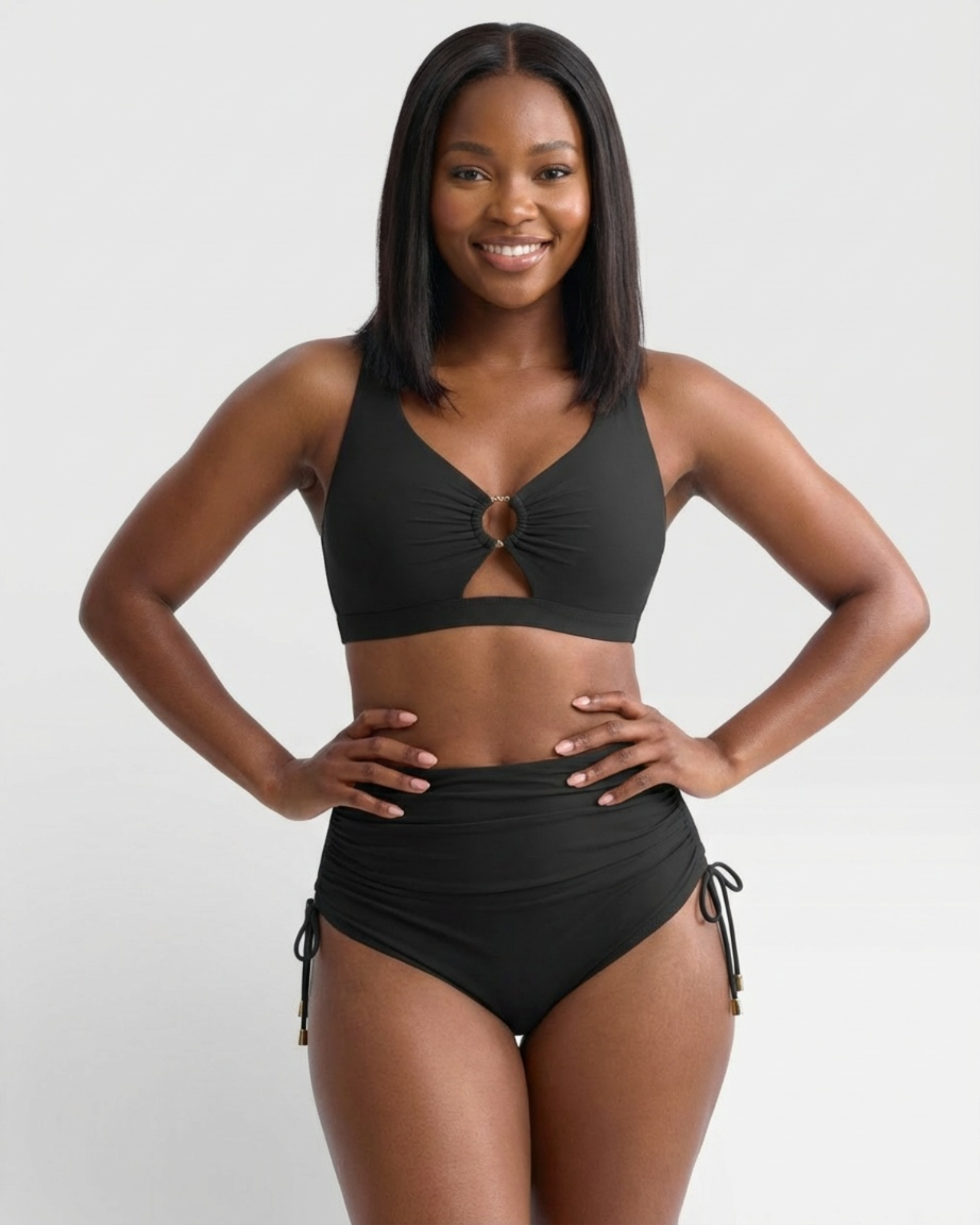 • Deep V-neck with metal accents: the triangle bikini top features a deep V-neck silhouette with chic metal detailing for a modern, fashion-forward finish
