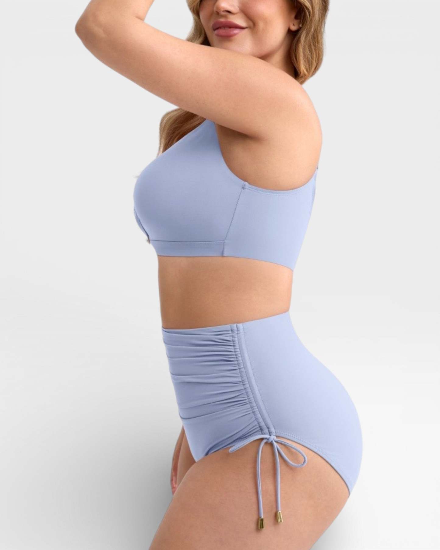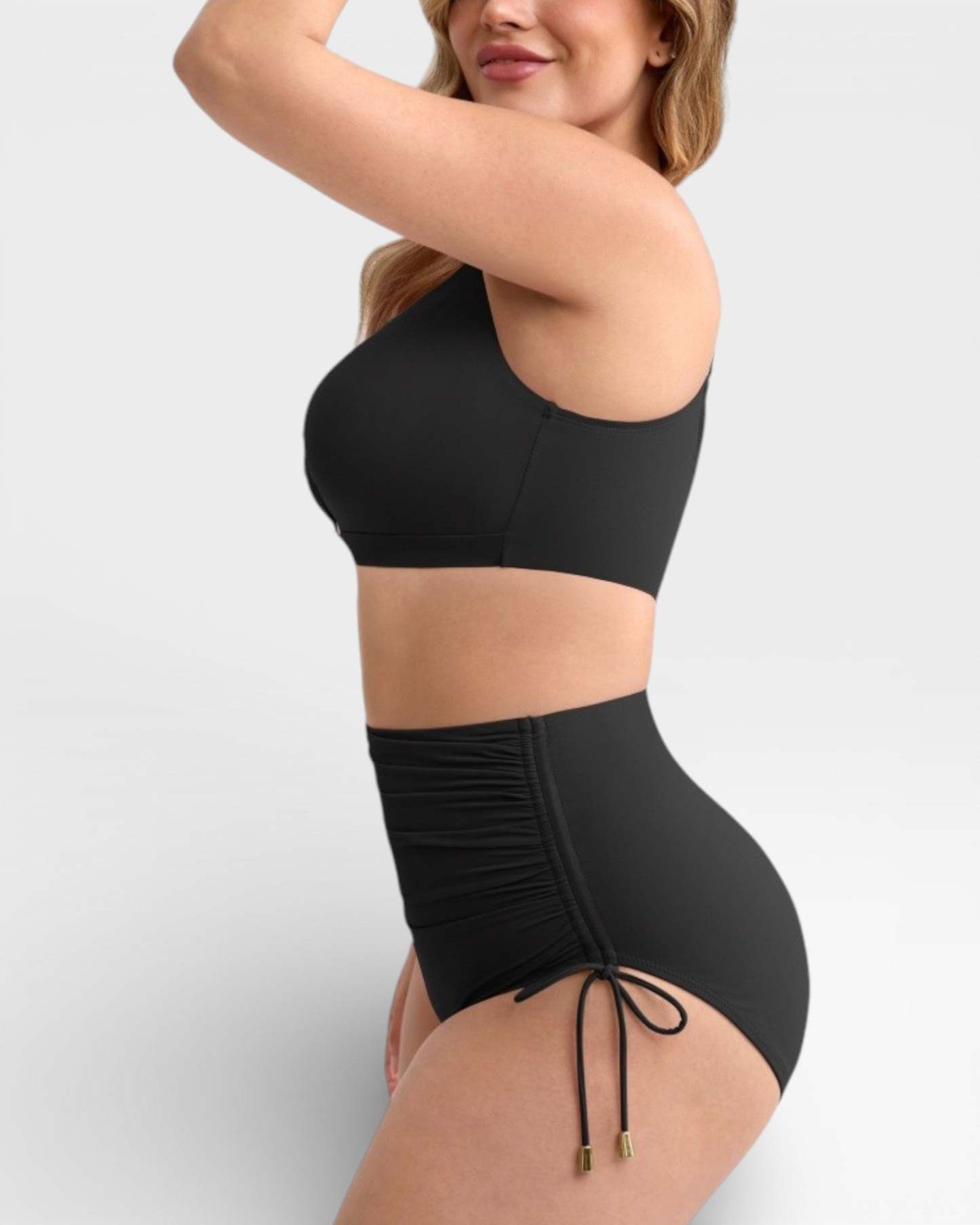 • Slimming drawstring design: adjustable side drawstrings allow you to customise the fit of the high-rise bottoms for a sculpted look