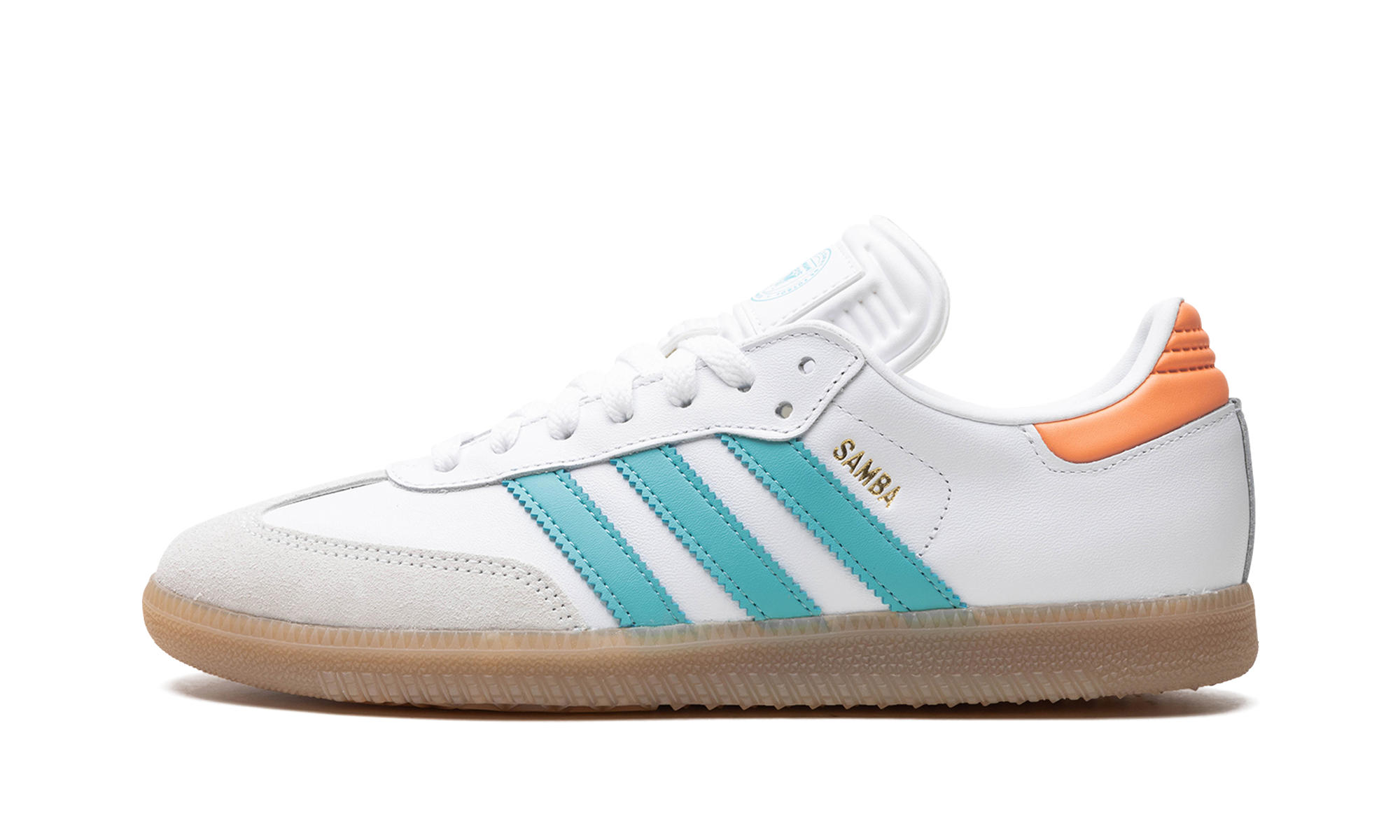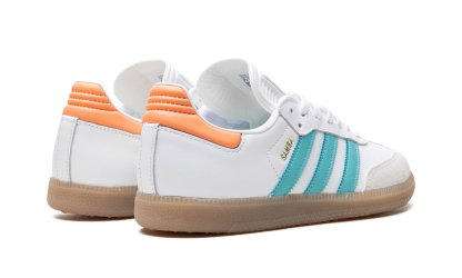The adidas Samba “Inter Miami - Easy Mint/Pink” is a colorway of the popular sneaker inspired by the Major League Soccer team Inter Miami CF. Also said to be inspired by Inter Miami’s star player Lionel Messi, the “Inter Miami - Easy Mint/Pink” features the colors of the Miami-based team on its design. The upper has a white leather construction with Easy Mint leather Three Stripes branding. A gold “Samba” logo appears on the lateral side of the mid-panel, while detailing inspired by Inter Miami is located on the tongue. A semi-translucent, smoky Gum rubber sole completes the look.
