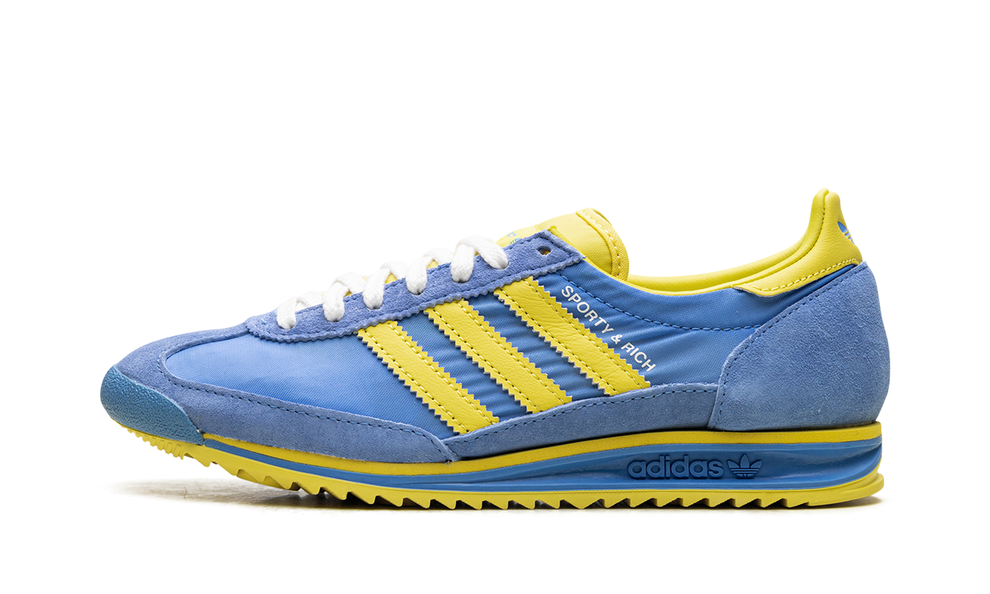 Step into heritage running style with the ADIDAS SL 72 RS WMNS "Sporty & Rich - Sweden Pack - Blue/Yellow." This sneaker is a collaboration with the lifestyle brand Sporty & Rich, drawing inspiration from the iconic colors of the Swedish flag. It updates the classic 1972 runner with a refined, women's-specific design, featuring a lightweight nylon and suede upper in a vibrant blue and yellow colorway. This is a premium, retro-inspired shoe that perfectly blends athletic history with contemporary luxury streetwear.
