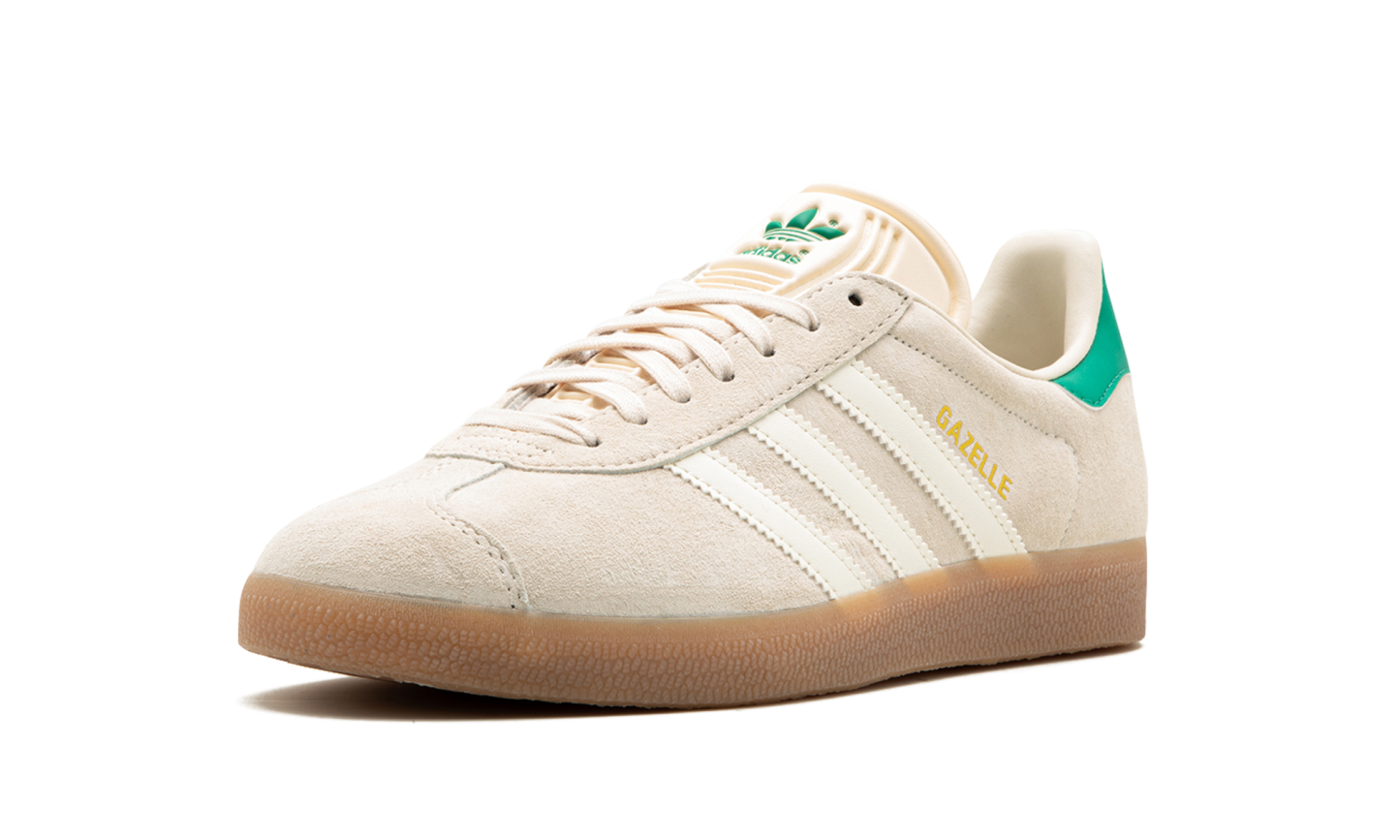 The Women's adidas Gazelle “Wonder White/Green” is a women’s-exclusive colorway of the retro sneaker with a classic-looking color scheme. The “Wonder White/Green” colorway features a Wonder White-colored suede construction contrasted with white leather Three Stripes and “Gazelle” branding on the side. An old school adidas Trefoil logo can be found on the green leather heel tab and on the tongue. Underfoot, a gum rubber sole completes the look. Release date: May 19, 2023