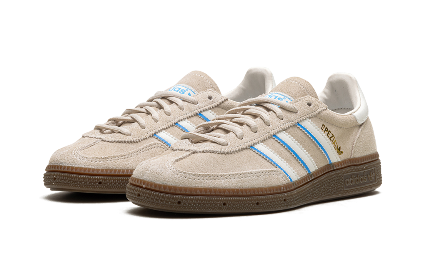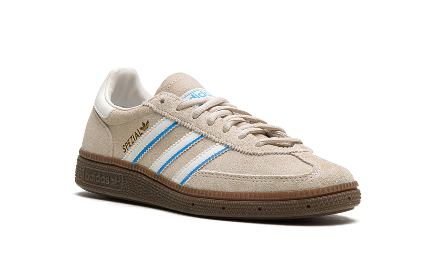 The adidas Handball Spezial “Aluminum” is a versatile, neutral colorway of the lifestyle shoe. The adidas Handball Spezial is a popular, casual sneaker with a versatile silhouette. On this colorway, the shoe features an Aluminum suede upper with Cloud White leather Three Stripes on the sides accented with blue. A gold “Spezial” logo is printed on the lateral side of the mid-panel. Cloud White accenting can be found on the leather heel tab, laces, and on the tongue tag featuring blue “adidas” detailing. A dark gum rubber sole completes the look.