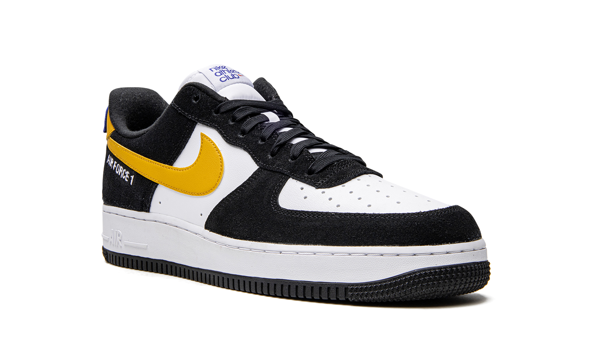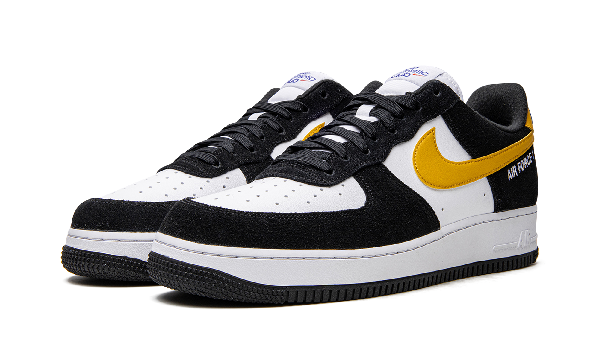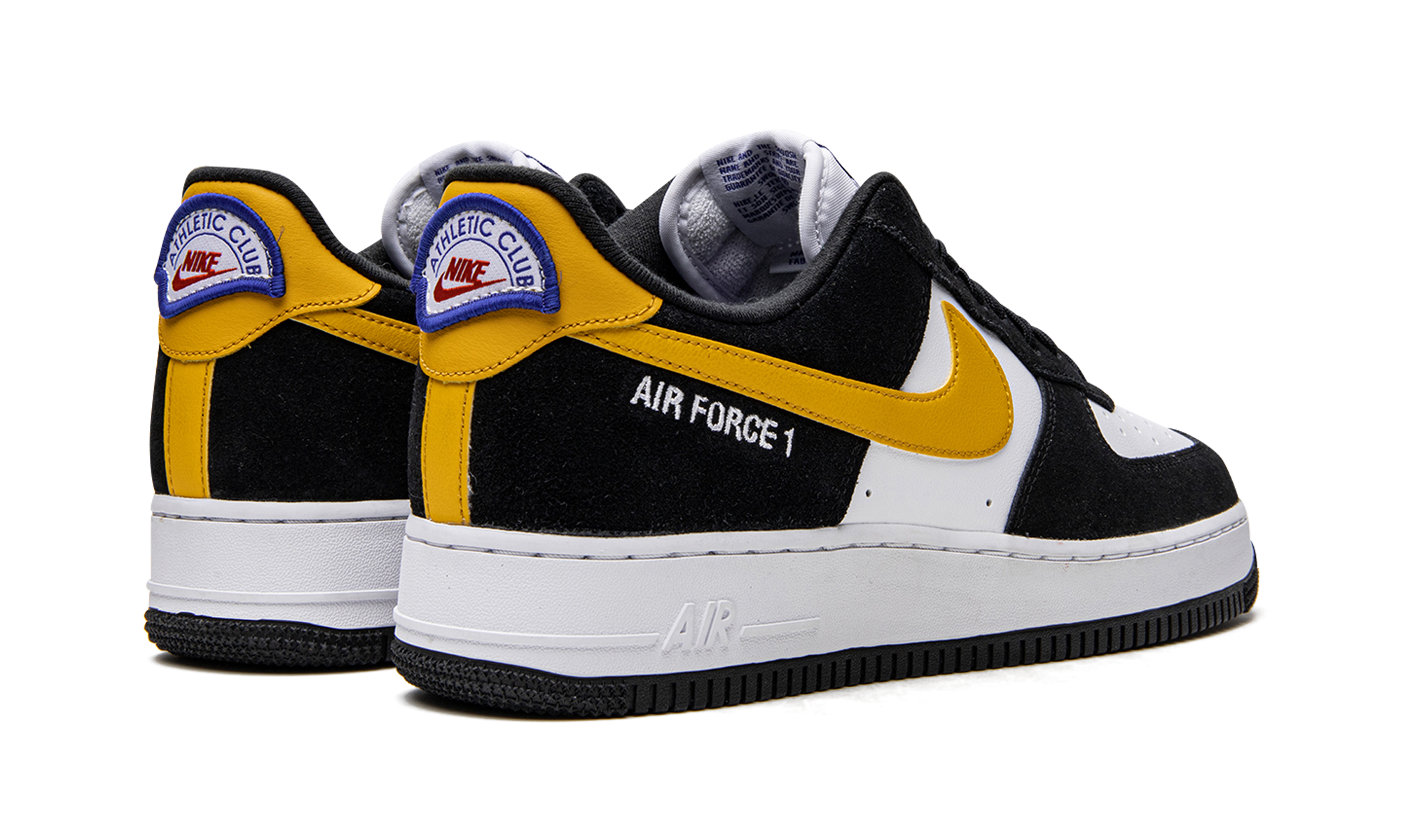 The Nike Air Force 1 “Athletic Club - Black/Dark Sulfur” is a colorway with unique patches and branding that nods to a fictitious sports club. From Nike’s Spring/Summer 2022 footwear collection, the Athletic Club AF1 in Black/Dark Sulfur features a white leather base with black synthetic nubuck overlays. A Dark Sulfur leather Swoosh logo appears on either side of the shoe. Contrasting white “Air Force 1” embroidery is found on the lateral side of the heel. Additional branding comes into play on the heel, where an “Athletic Club - Nike” patch gives the shoe a vintage look. An “Athletic Club” logo appears on the tongue tag, as well. Underfoot, a white rubber midsole with tonal “Air” branding is contrasted with a black outsole. Athletic Club