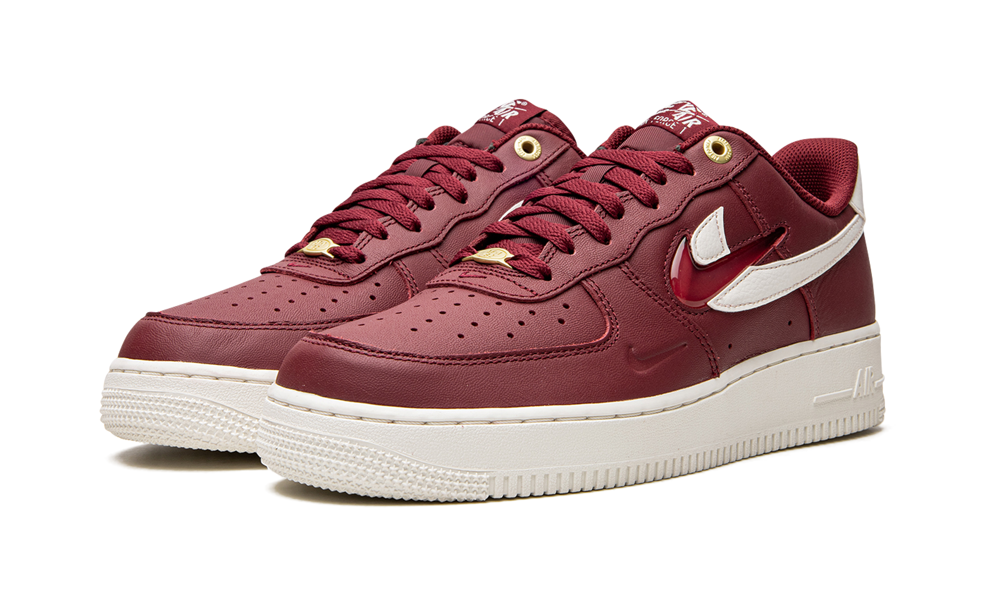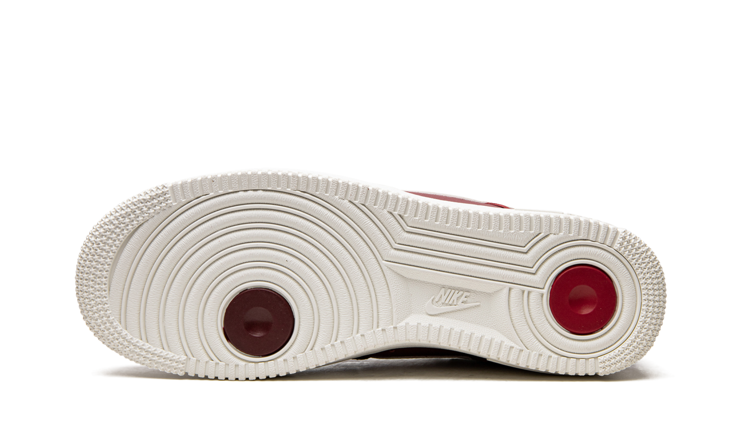 The Nike Air Force 1 Low “Join Forces - Team Red” is a unique colorway of the retro basketball shoe with dual Swooshes on its design. Celebrating the Air Force 1’s 40th anniversary, the “Join Forces - Team Red” colorway is complete with a Team Red leather construction with a tonal jeweled Swoosh layered over a Sail leather Swoosh. Red “Nike Air” branding in an old school style design is embroidered over grey “Nike Air” detailing on the Sail leather heel tab. A small Swoosh is debossed on the lateral side of the forefoot overlay. Underfoot, a Sail-colored rubber midsole with tonal “Air” branding completes the look. Join Forces - Team Red