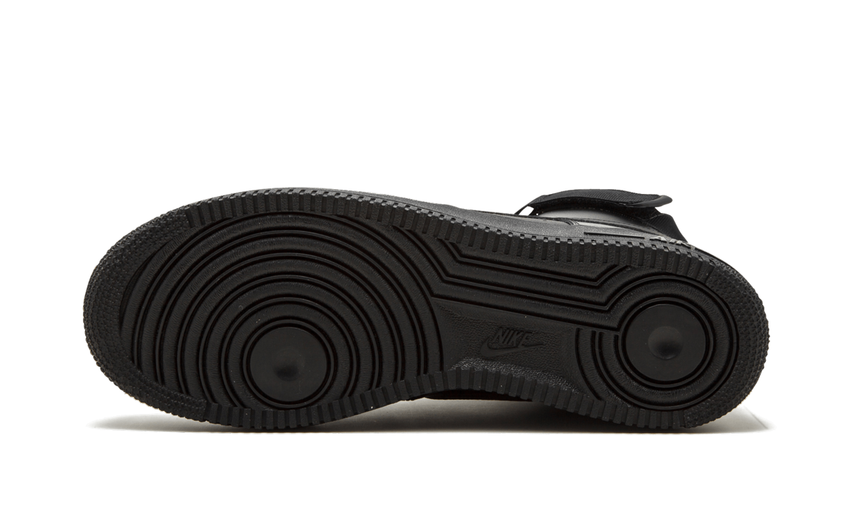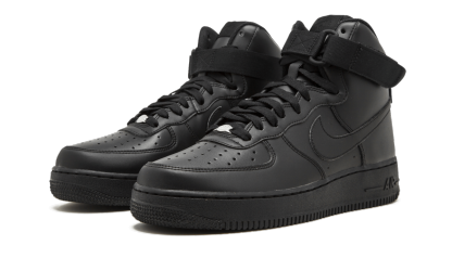 The Nike Air Force 1 High “Triple Black” is a shadowy rendition of one of the greatest shoes of all time. Undoubtedly a pop culture icon, the Air Force 1 is beloved by celebrities, style stars, and everyone in between. The high-top model seen here is equipped with a black leather construction. Tonal overlays on the forefoot and heel, as well as a blacked-out Swoosh on the mid-panel, keep in tune with the vibe. An adjustable black nylon ankle strap provides a customizable fit for the wearer. A black sole with tonal “Air” branding on the heel completes the look. Triple Black