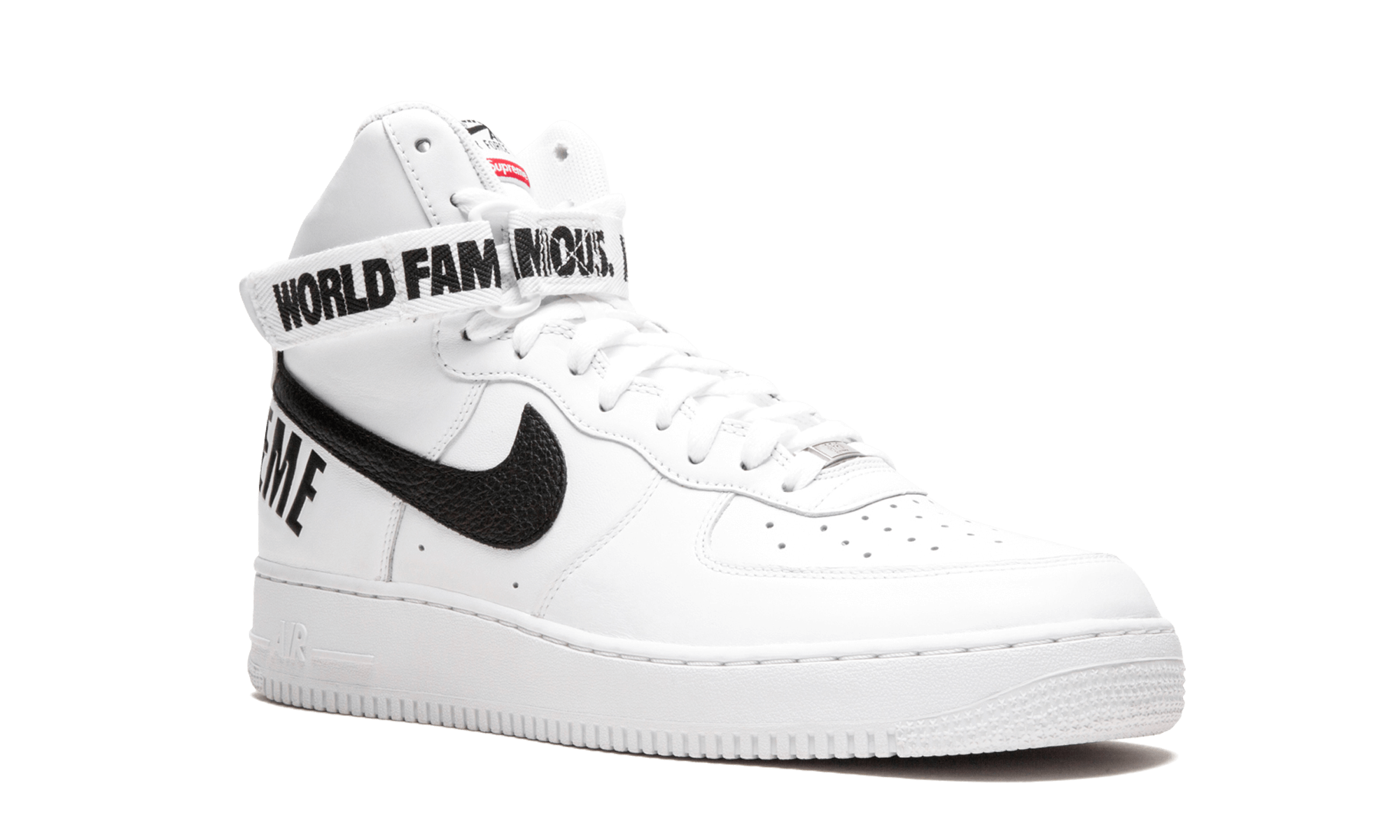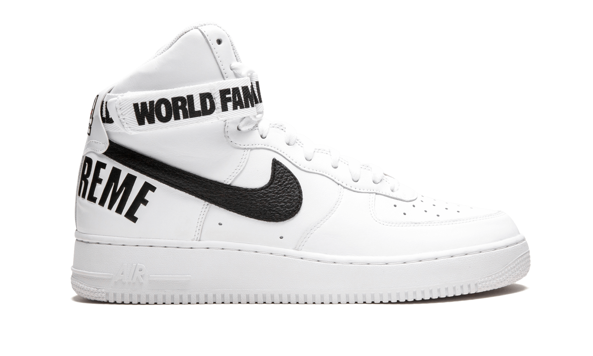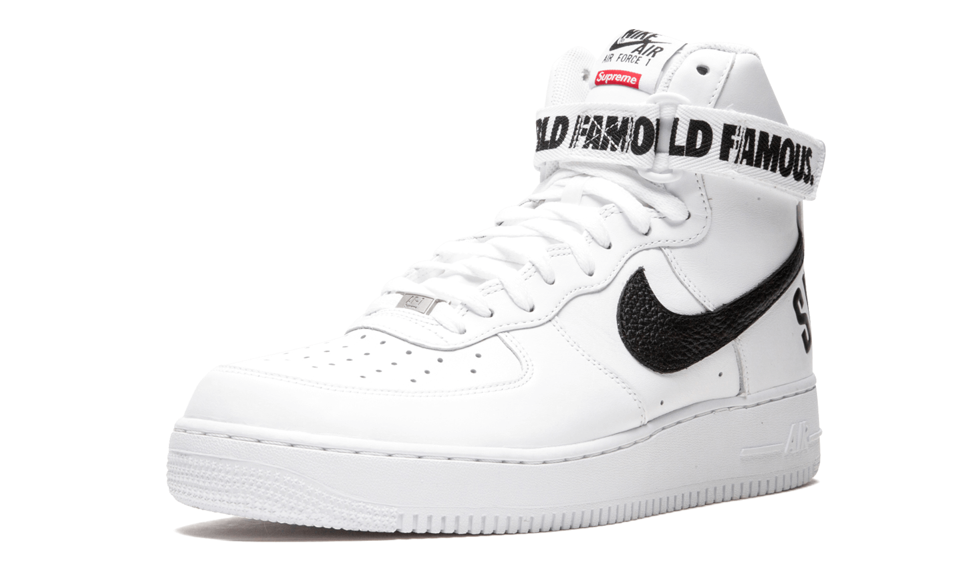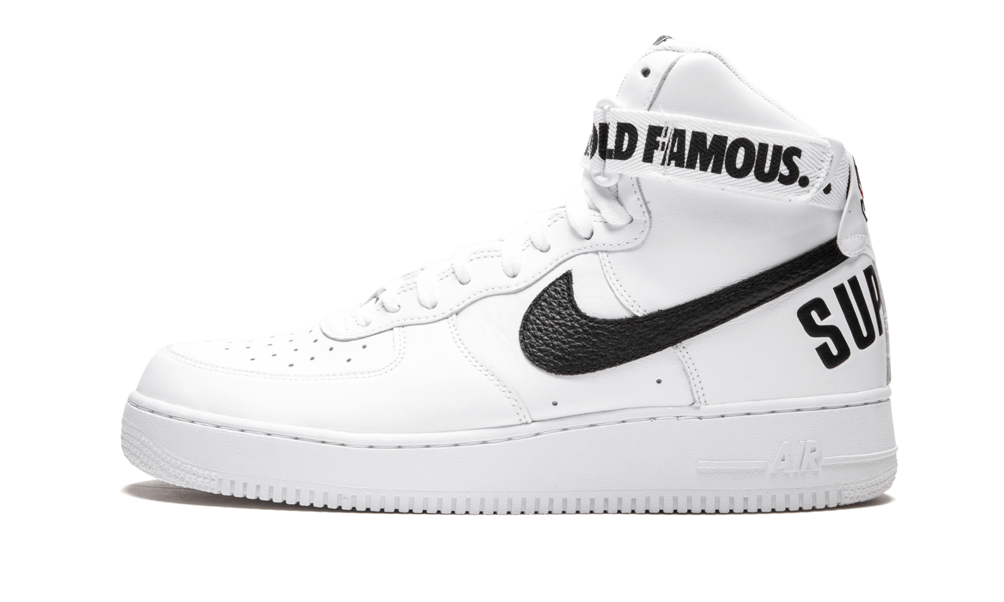 Supreme and Nike Sportswear dropped another one of their monumental collaborations in 2014, with three colorways of the Air Force 1 High including this version in white leather with black accents. As you can expect, all three sold out instantly and have since become some of the most sought after Air Force 1s in years. World Famous, indeed. White