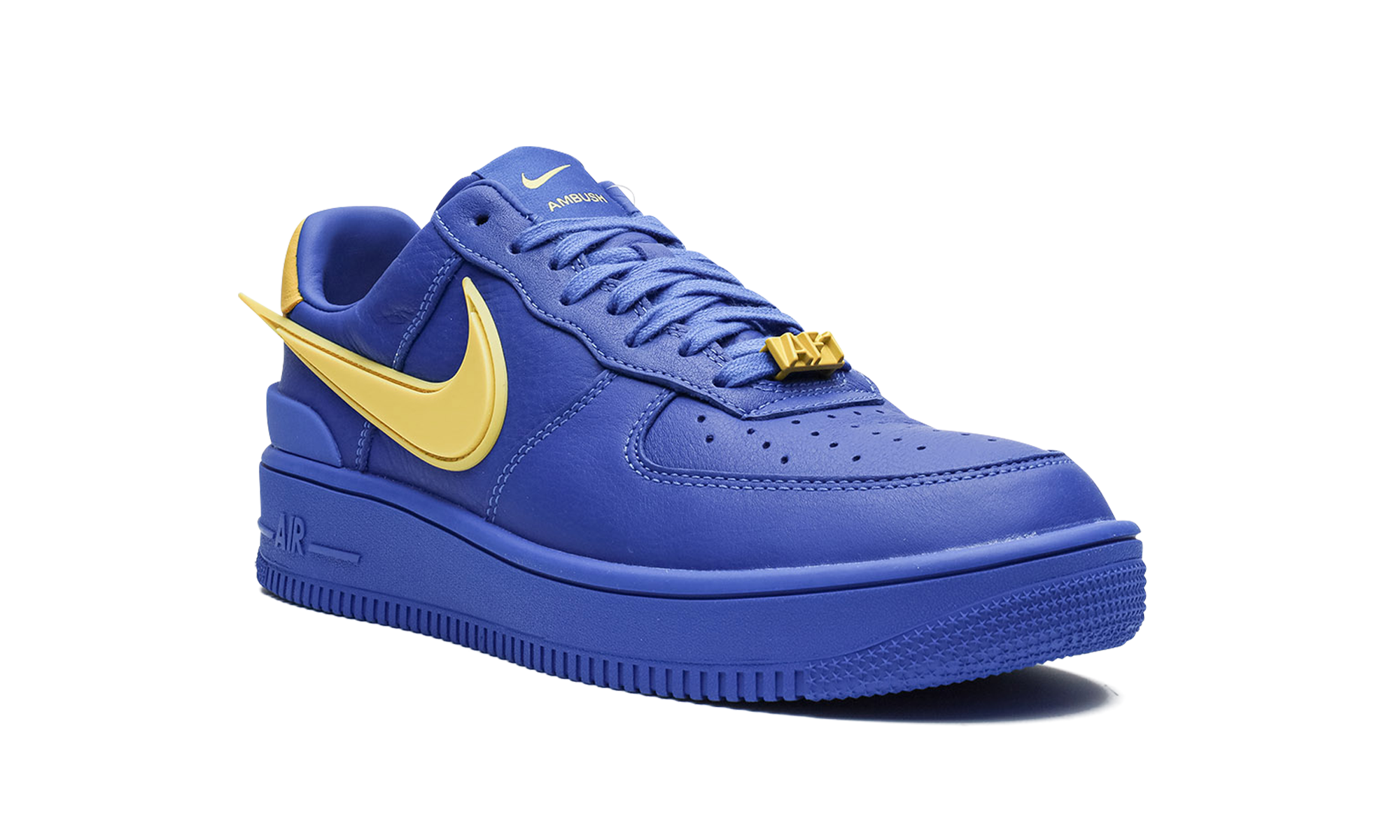 The Ambush x Nike Air Force 1 Low “Game Royal” is a collaboration by Yoon Ahn and Verbal’s luxury jewelry brand that puts a unique and premium spin on the classic sneaker. The “Game Royal” is Ambush’s take on the Air Force 1 Low that updates the shoe with a mostly monochromatic blue appearance. The shoe’s upper features a Game Royal leather construction. A Varsity Maize elongated Swoosh is found on either side and extends off the heel. A TPU heel overlay ties into the shoe’s contemporary vibe. A co-branded tongue tag features logos by Ambush and Nike. Underfoot, the Game Royal rubber sole completes the look. Release date: December 16, 2022 AMBUSH - Game Royal