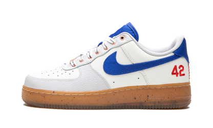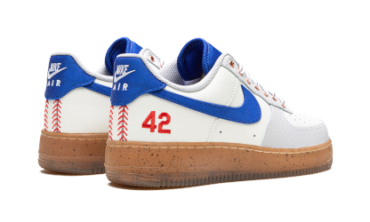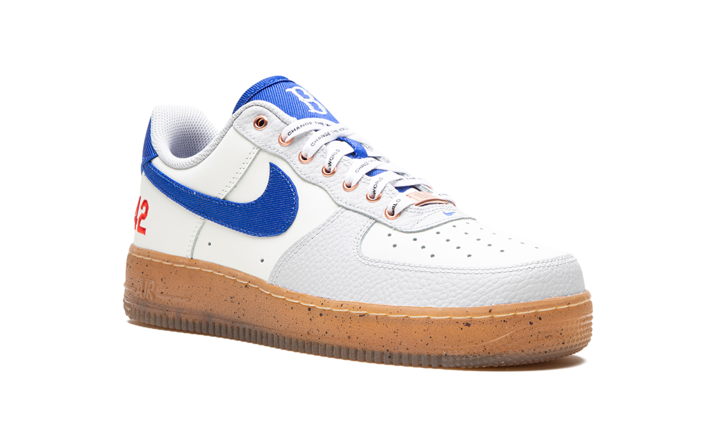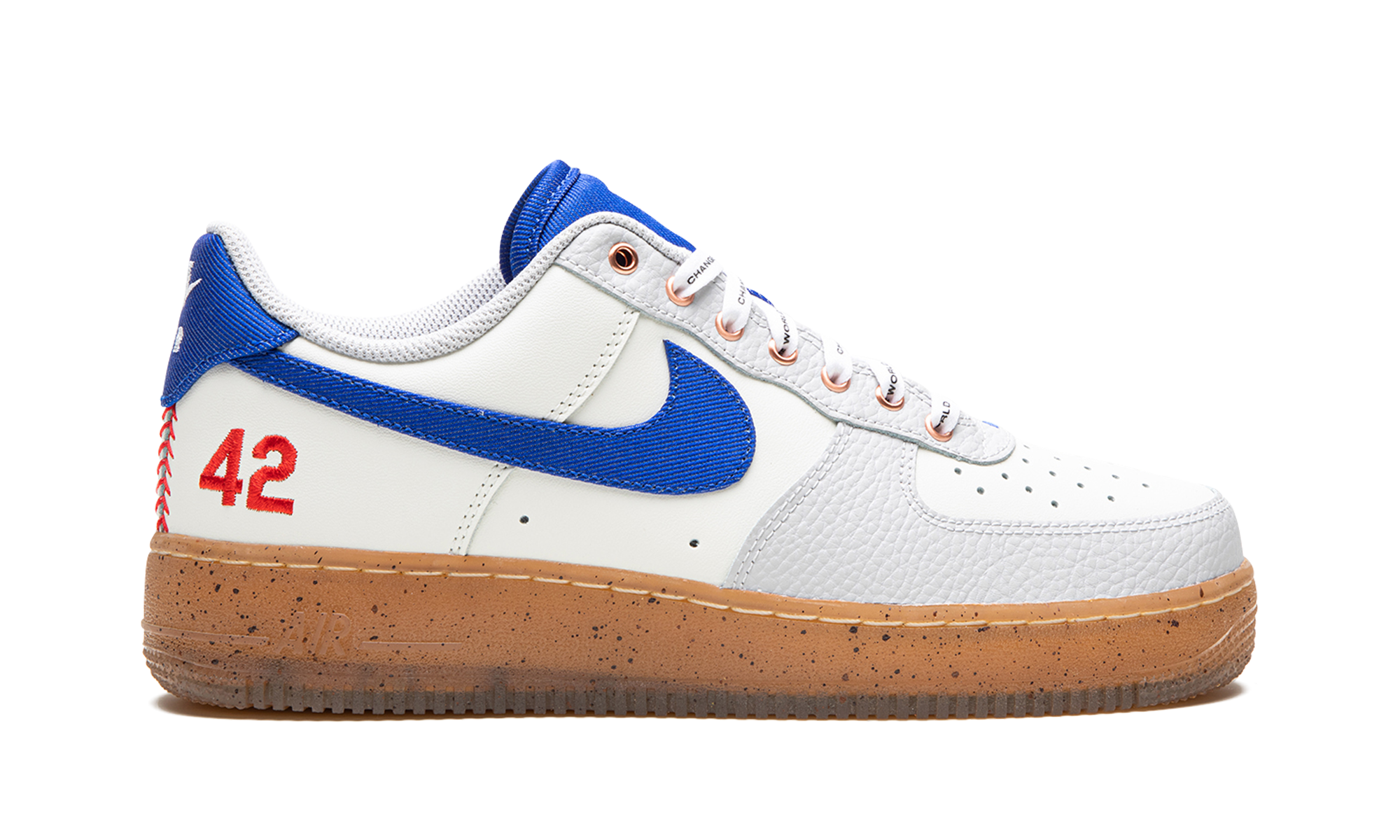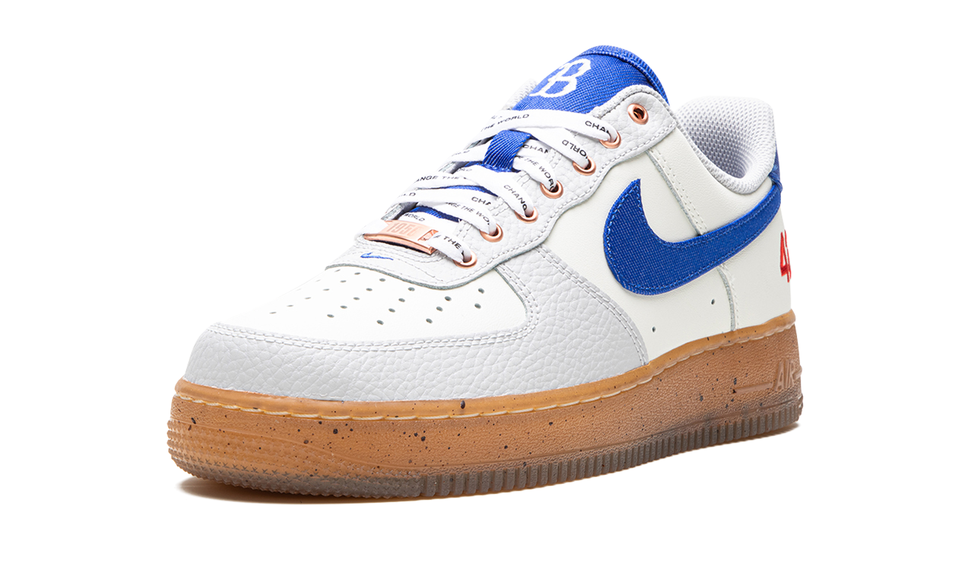 The Nike Air Force 1 Low “Jackie Robinson” is a special colorway of the vintage basketball and lifestyle shoe that honors the legacy of the iconic Baseball Hall of Famer and civil rights activist. Jackie Robinson is a former Brooklyn Dodger who broke baseball’s color barrier in 1947 when he became the first Black player in Major League Baseball. On this Air Force 1, Nike celebrates his triumphant feat with special detailing in his honor. The shoe features a Sail leather construction with a Racer Blue Swoosh on the sides. A red “42” logo, inspired by Jackie’s number with the Dodgers, is embroidered on the lateral side of the heel. The Brooklyn Dodgers “B” logo is embroidered on the Racer Blue tongue. “Change the World” is printed on the laces and branding specific to Robinson appears on the insole. The shoe is complete with a brown speckled rubber sole inspired by baseball field dirt. Release date: April 15, 2023 Jackie Robinson