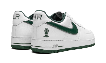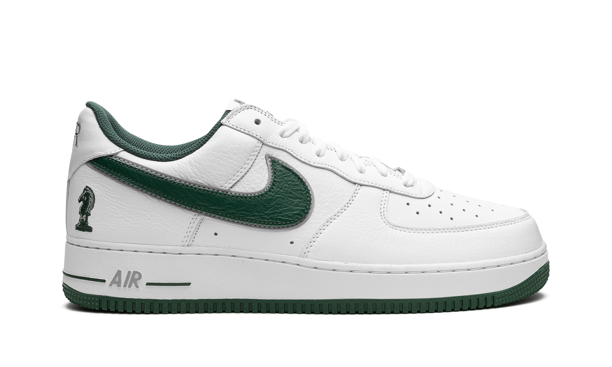 The Nike Air Force 1 Low “Four Horsemen” is a colorway of the classic basketball and lifestyle sneaker that debuted in 2003 as part of the celebration of LeBron James signing with Nike. Brought back by Nike in 2023, the “Four Horsemen” shows love to LeBron and his inner circle of friends and business partners, including Maverick Carter, Rich Paul, and Randy Mims—otherwise known as “The Four Horsemen,” a moniker inspired by the Ric Flair-led pro wrestling group of the same nickname. The shoe features a white leather construction with a green embroidered knight chess piece “Horsemen” logo on the lateral side of the heel. A Deep-Forest-colored leather Swoosh appears on the sides, completing the look of this modern reissue of a classic sneaker from Nike’s vault. Release date: April 27, 2023 LeBron James "Four Horsemen"