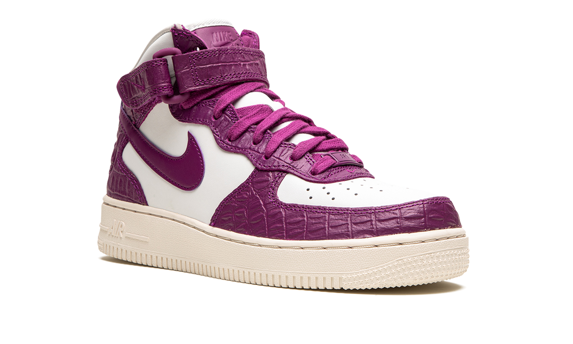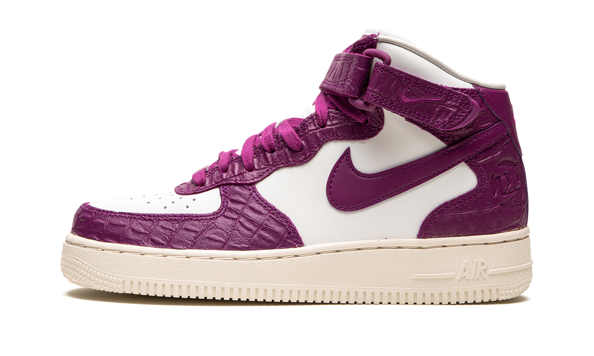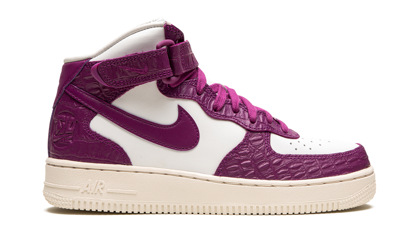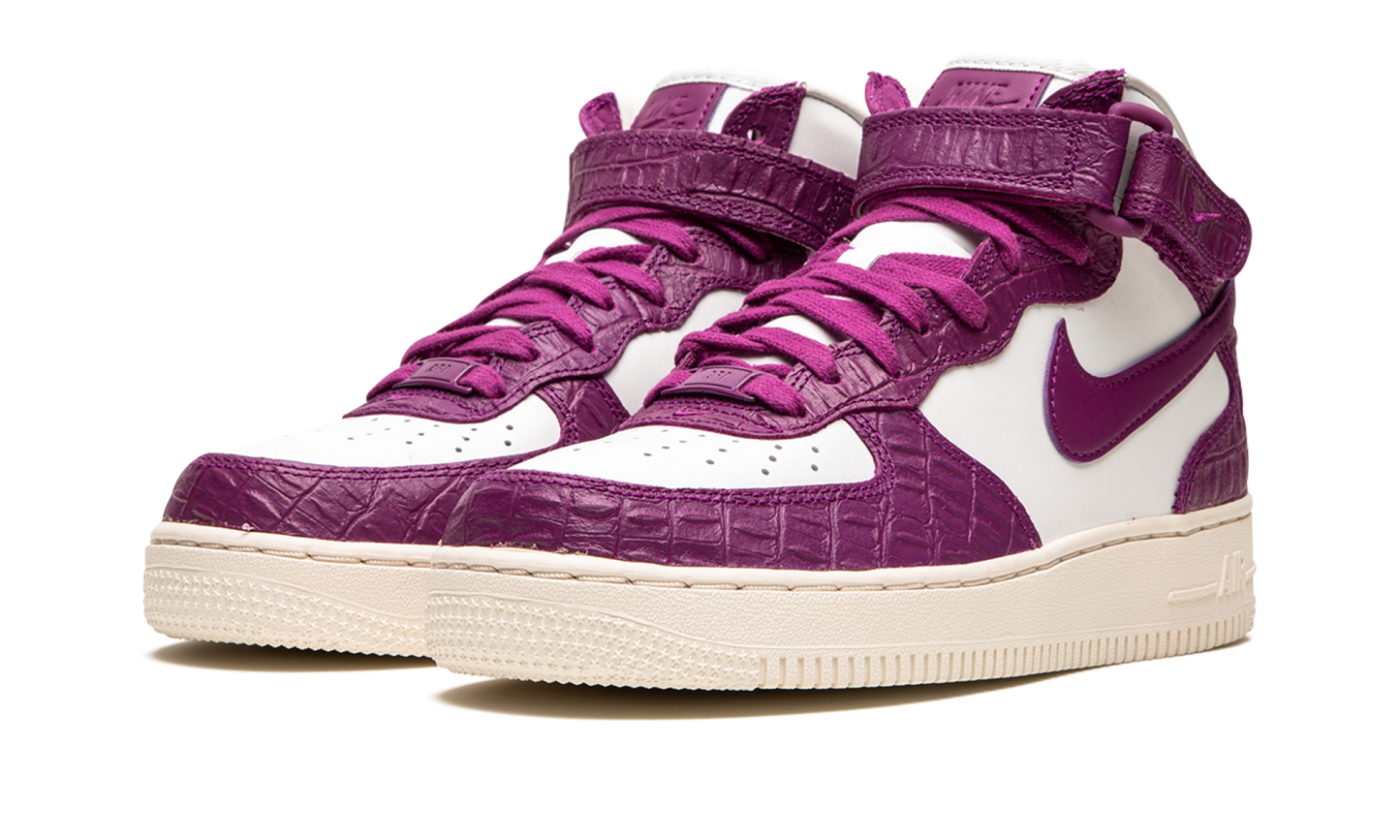 The Women’s Nike Air Force 1 Mid “Tokyo Viotech” is a women’s-exclusive colorway of the classic basketball and lifestyle shoe with a decidedly luxurious design. The “Tokyo Viotech” updates the Air Force 1 Mid with faux reptilian leather overlays in a rich magenta hue called Tokyo Viotech. The leather Swoosh branding that is found on either side of the shoe is also rendered in the same shade of magenta. Additional “Nike Air” detailing is debossed tongue tag. Tokyo Viotech