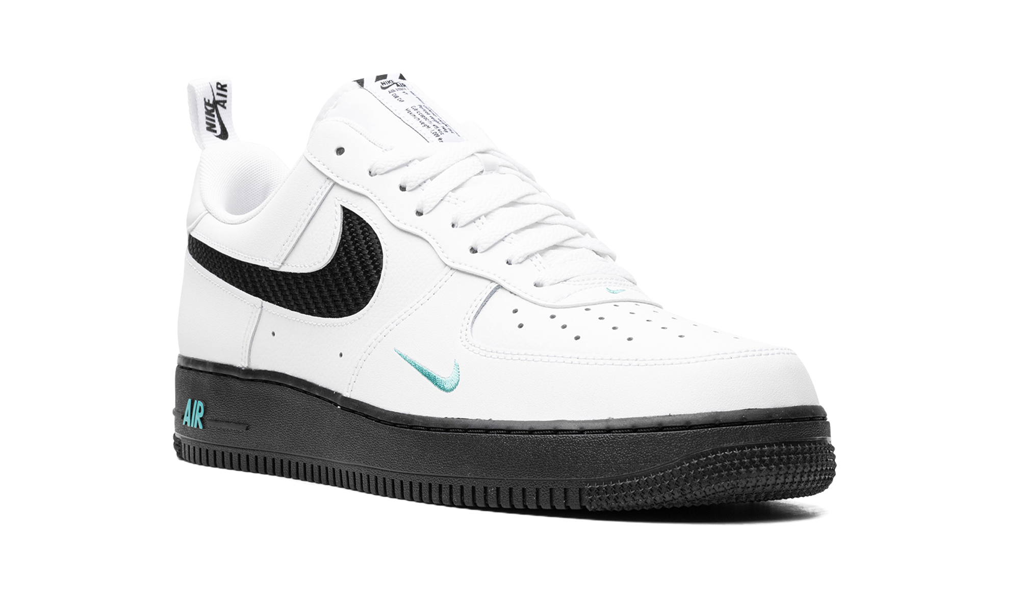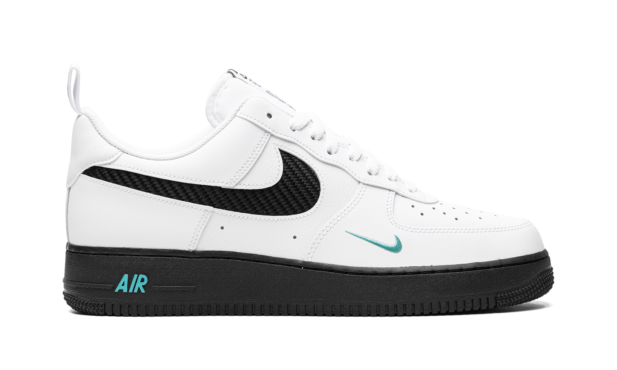 The Nike Air Force 1 "White/Black/Teal" is a colorway of the retro basketball shoe that features a ballistic mesh Swoosh and other added details. The “White/Black/Teal” Air Force 1 Low features a white leather upper with a cut-out design that exposes a black ballistic mesh Swoosh on each side. Tonal leather overlays are found throughout the shoe. A small Teal Swoosh is embroidered on the lateral side of the forefoot. A white nylon pull tab with black “Nike Air” and Swoosh detailing adds a unique look to the Air Force 1 Low. Underfoot, the shoe is situated on a black rubber sole. A teal “Air” logo appears on the lateral side of the midsole. Release date: June 19, 2023 White/Black Teal