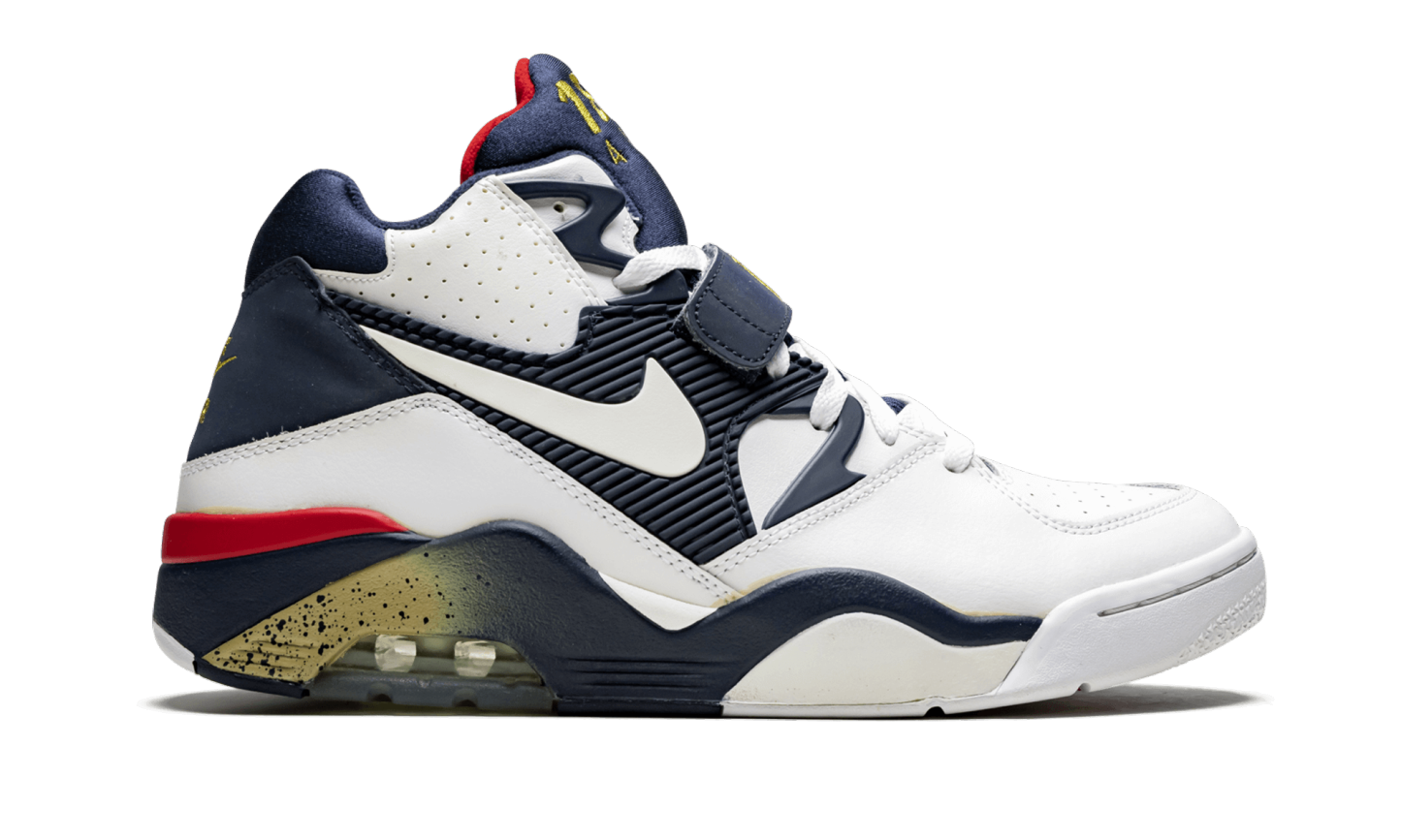 This patriotic colorway of the Nike Air Force 180 was worn by Charles Barkley during the 1992 Olympics as a member of the legendary Dream Team. “Sir Charles” was a major contributor to the authoritative success of Team USA on the way to the gold medal, as he was the team’s leading scorer for the tournament. Olympic