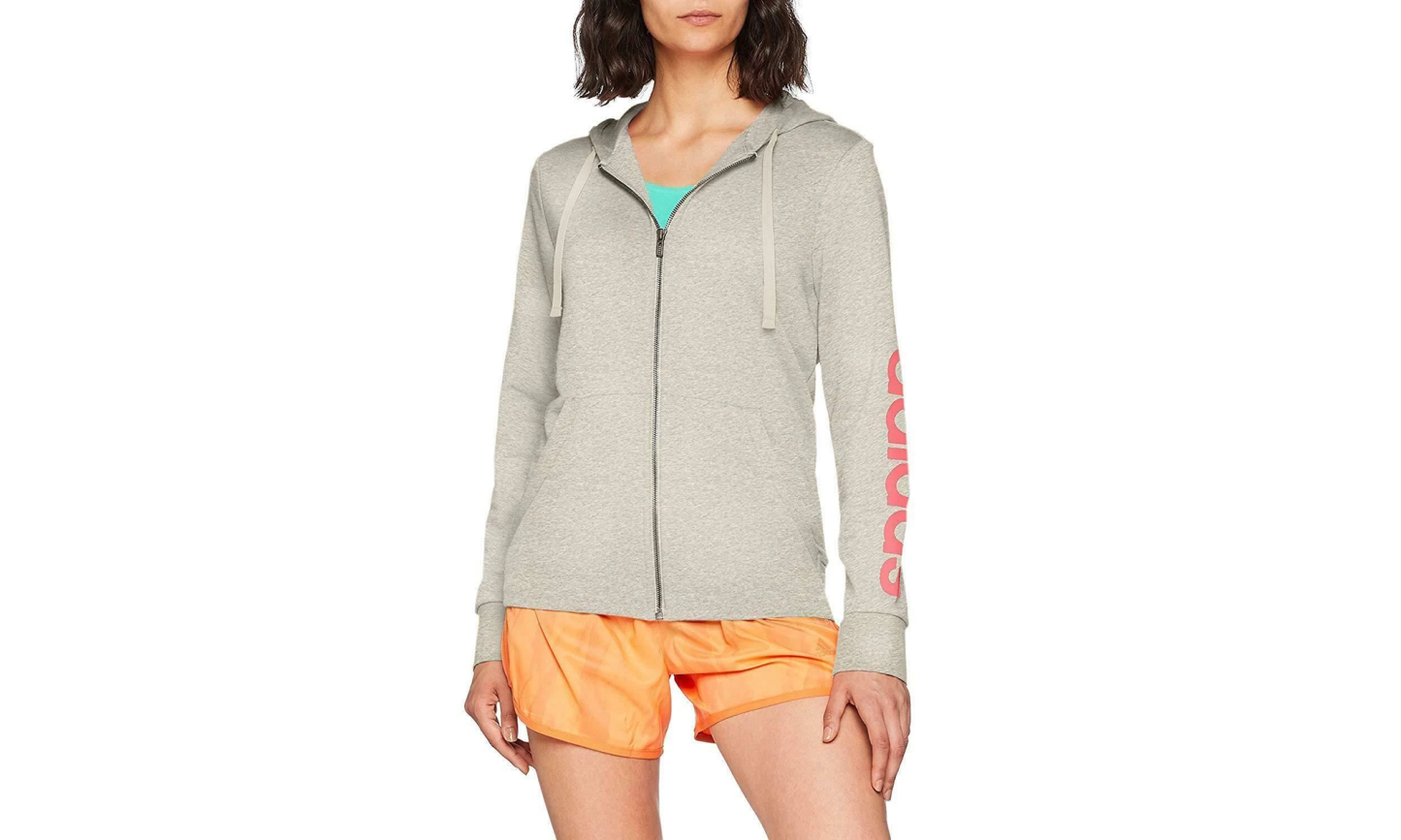 Essential Linear Fullzip Hoodie WMNS "Medium Grey Heather / Real Pink" CF8800