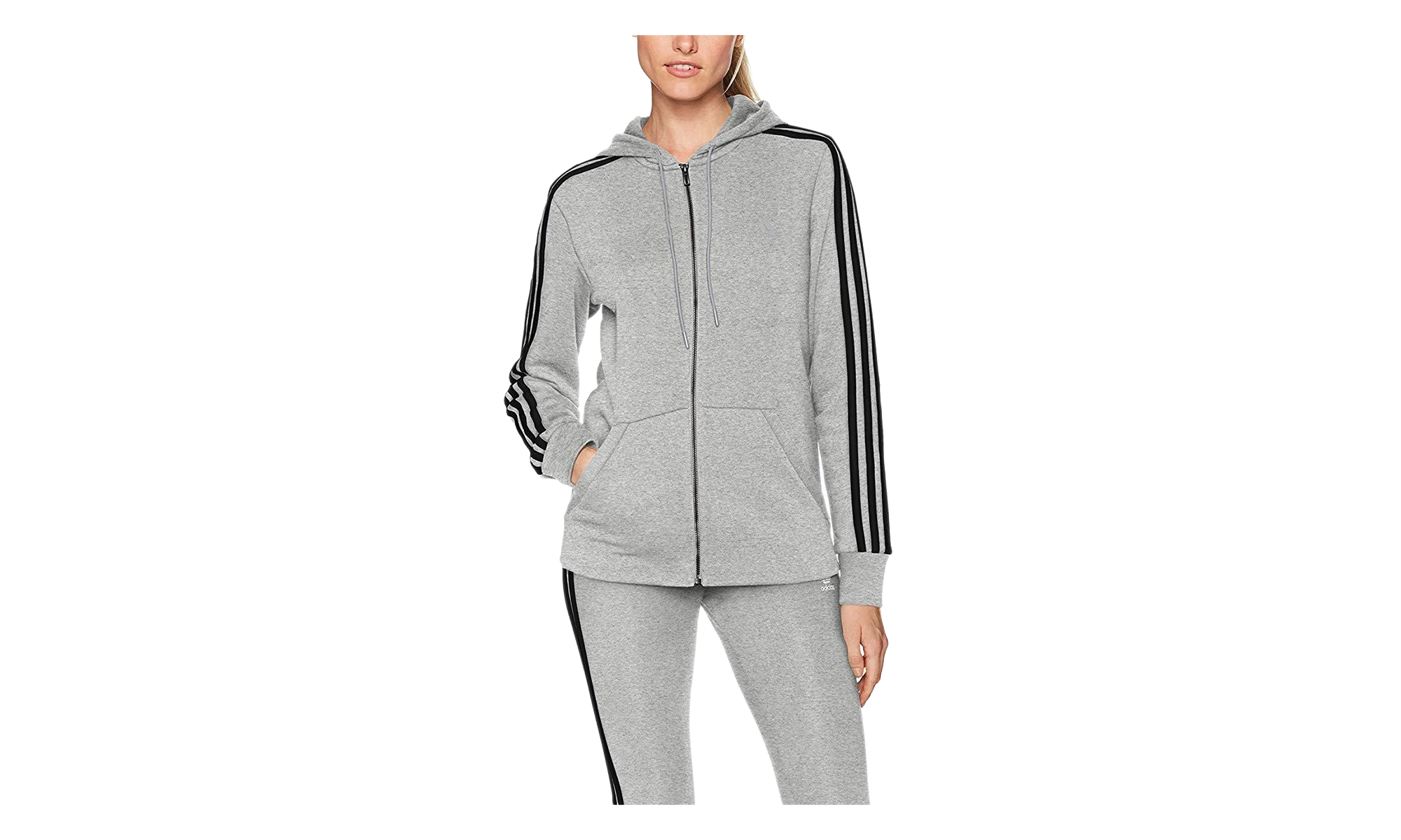Essentials Cotton Fleece 3-Stripe Full Zip Hoodie WMNS "Grey / Black" CD2250