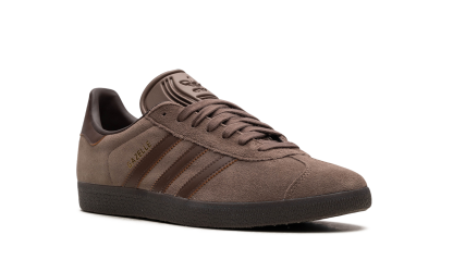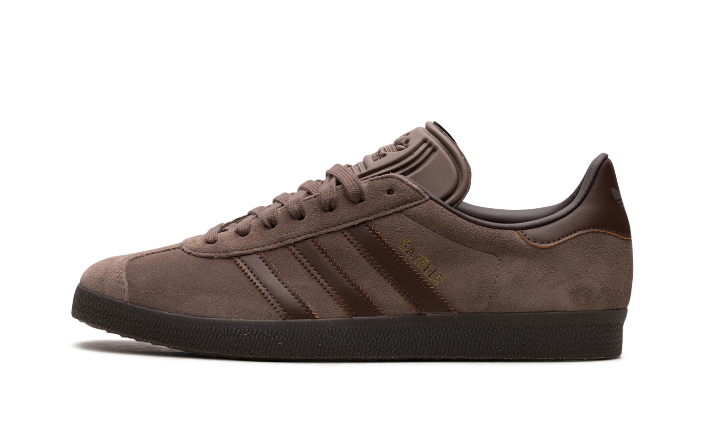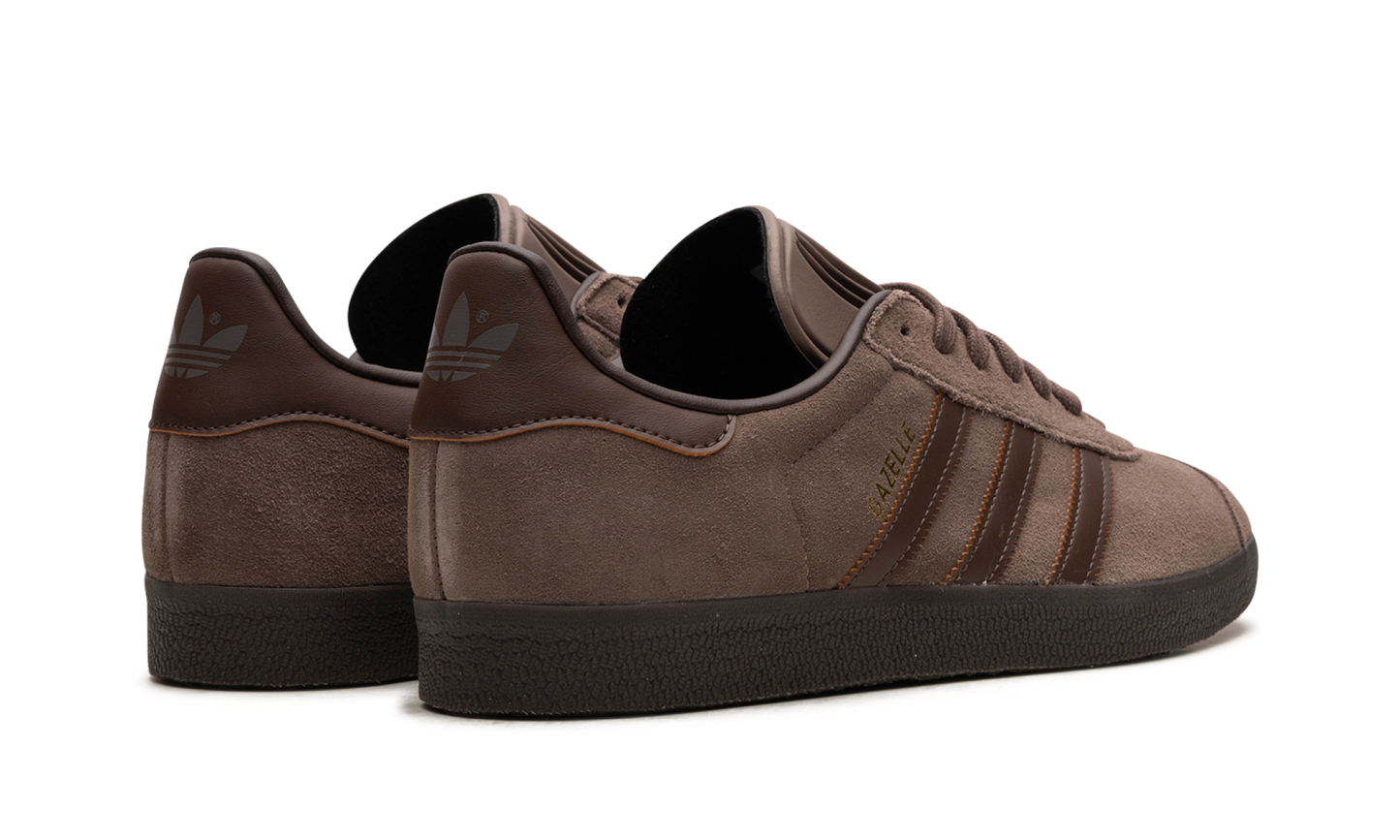 The adidas Gazelle “Earth Strata/Brown” is an all-brown colorway of the retro sneaker. The popular silhouette by the German footwear company features a brown suede construction with slightly darker brown leather Three Stripes branding on each side of the shoe. Gold “Gazelle” detailing appears on the lateral side of the mid-panel, while an adidas Trefoil logo is printed tonally on the brown leather heel tab. A debossed adidas Trefoil logo can be seen on the brown tongue. Underfoot, a dark brown rubber sole completes the look.
