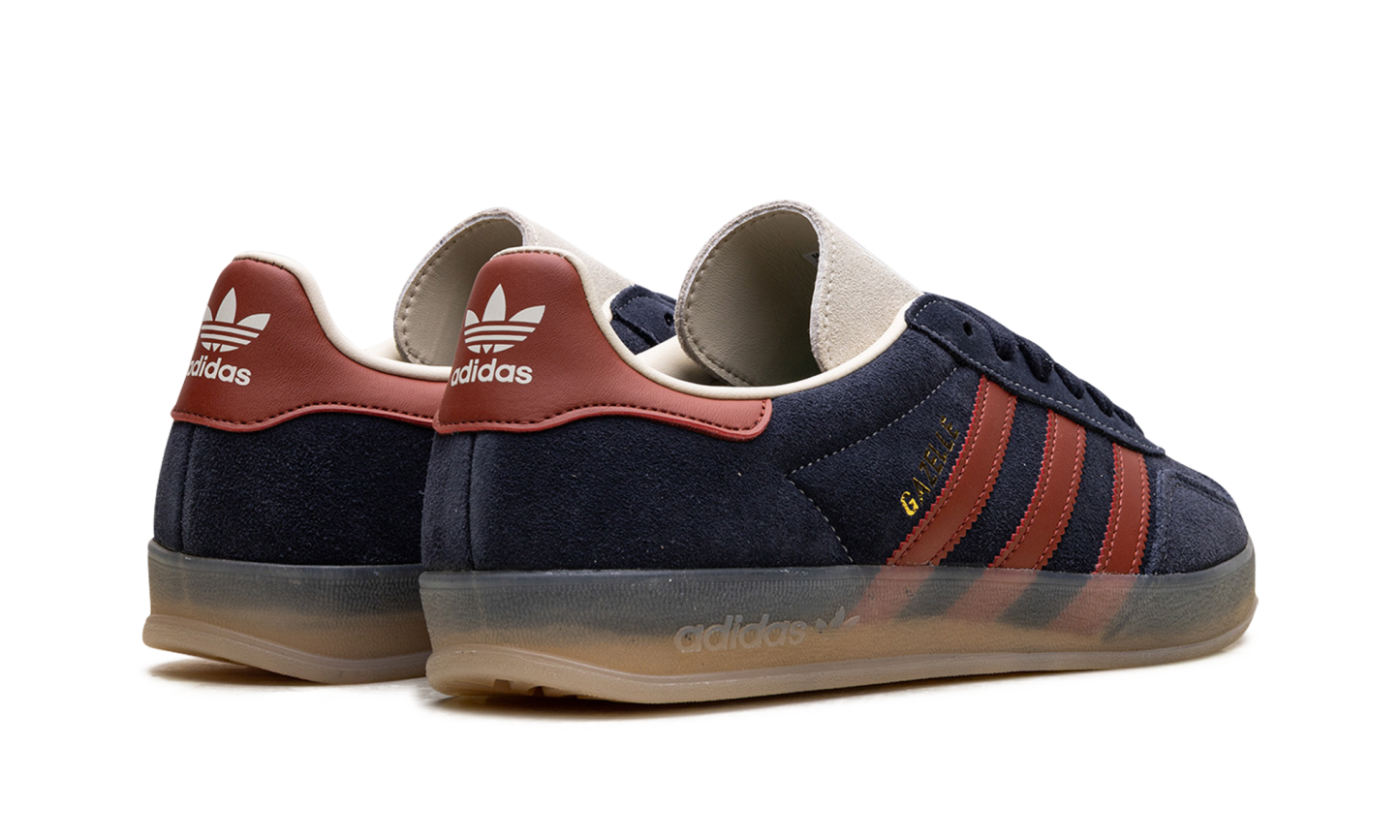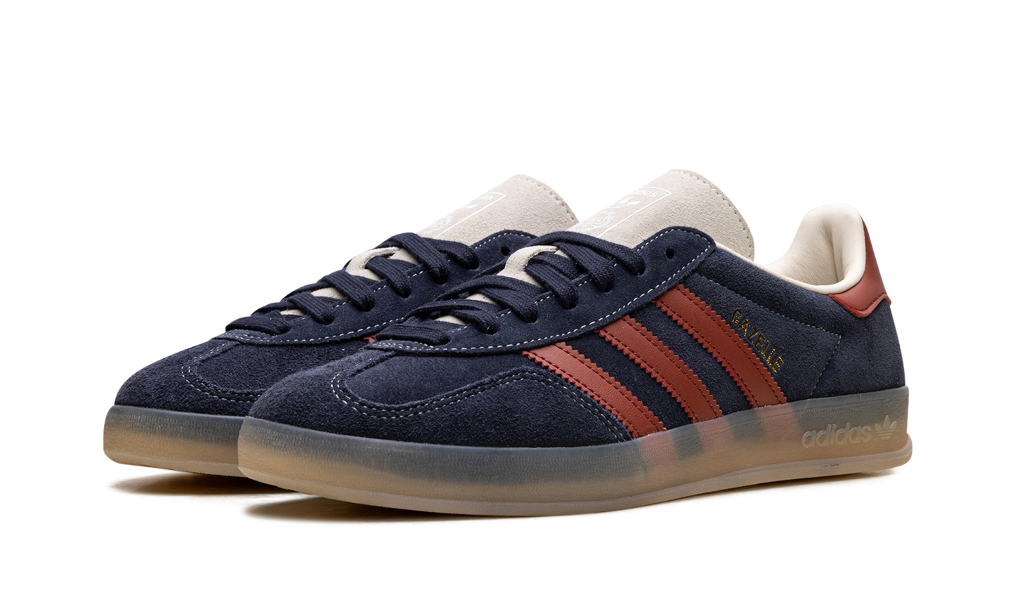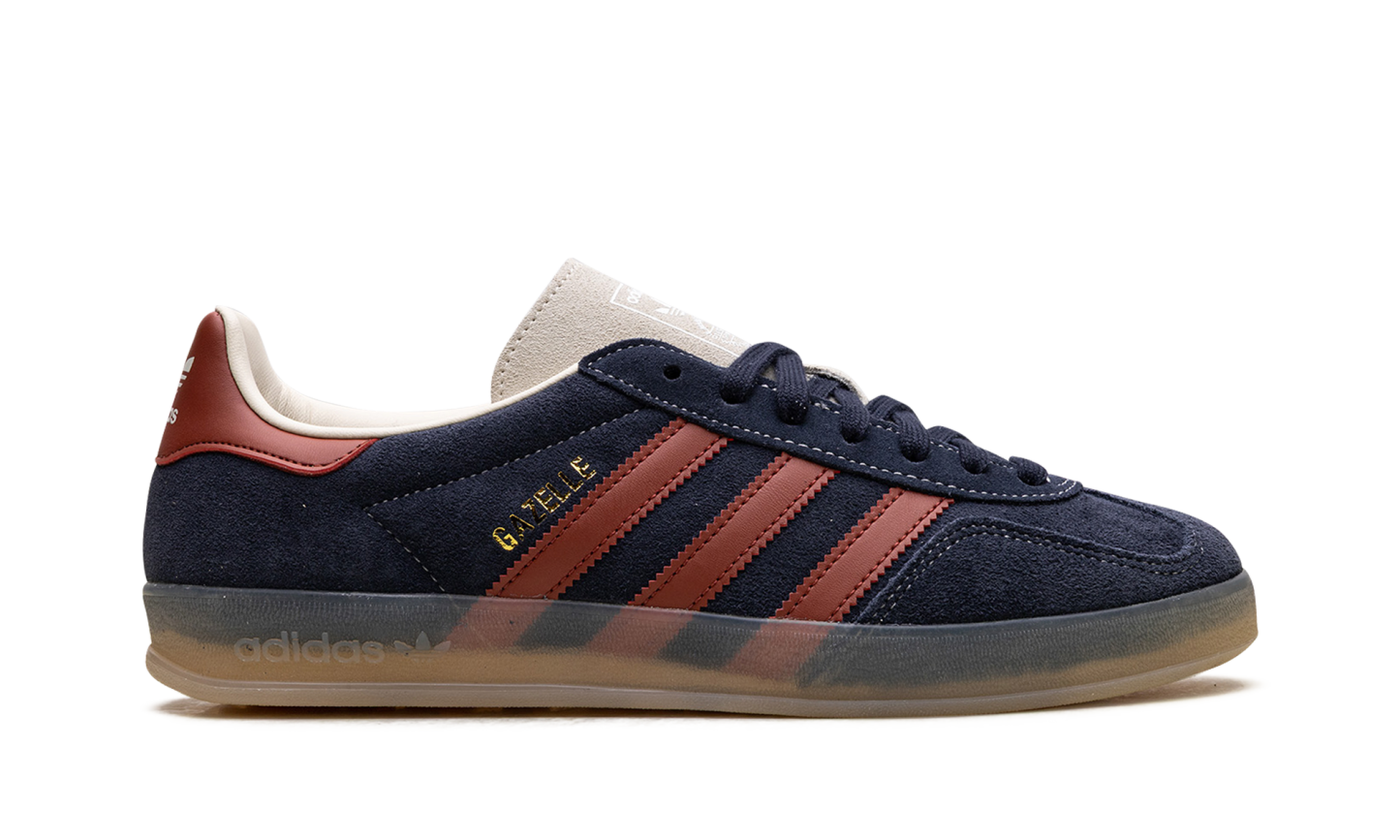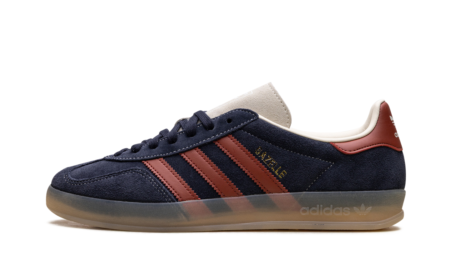 Capture the perfect blend of retro style and bold color with the adidas Gazelle Indoor "Legend Ink/Preloved Ruby," a re-release of the iconic 1970s training shoe. This sneaker features a deep, inky blue suede upper contrasted by vibrant "Preloved Ruby" leather 3-Stripes and heel tab. The unique, translucent gum rubber outsole provides that signature "Indoor" look and durable traction. Finished with a gold-foil Gazelle logo, this pair is a timeless staple for any casual or street-style outfit.