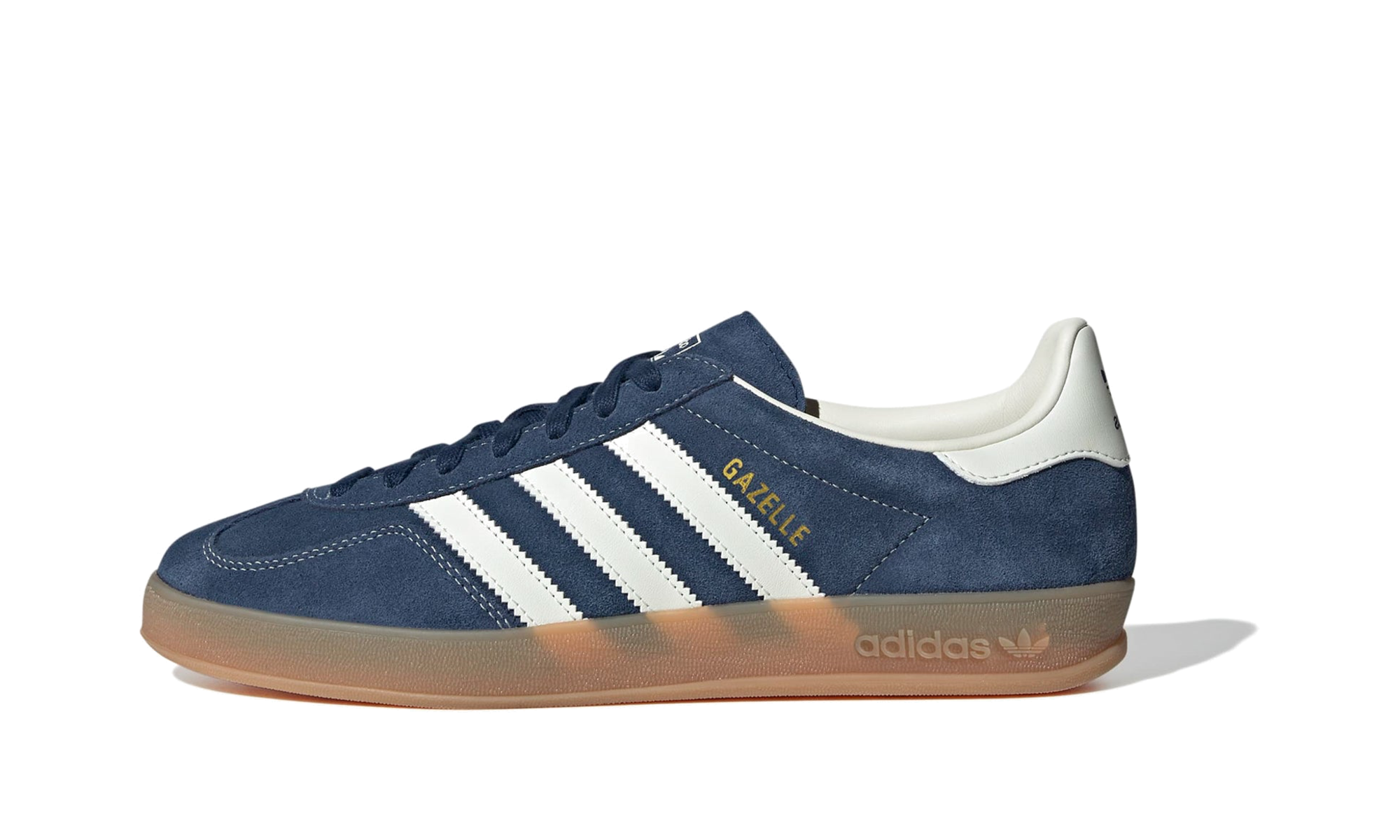 Step into a timeless classic with the adidas Gazelle Indoor "Night Indigo Off White" trainer! This iconic sneaker revives a vintage '70s court shoe, featuring a rich, dark blue Night Indigo suede upper for a premium feel. The classic Off White leather 3-Stripes and heel tab provide a sharp, clean contrast. Grounded by the signature translucent gum rubber outsole, this shoe offers a comfortable fit and a versatile, instantly recognizable retro style perfect for everyday wear.