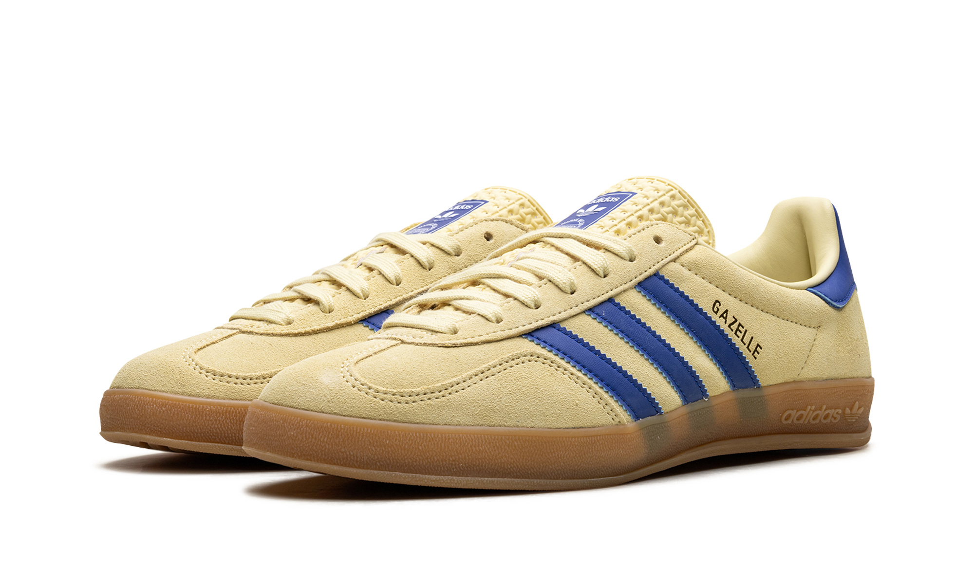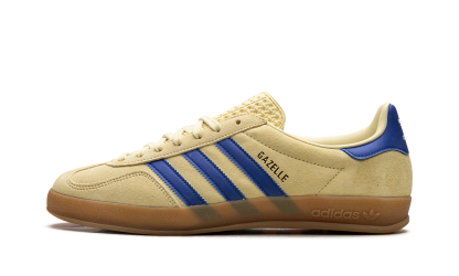 Inject a burst of color into your rotation with the Adidas Gazelle Indoor "Powder Yellow / Royal Blu." This eye-catching sneaker features a vibrant Powder Yellow suede upper, sharply contrasted by Royal Blue leather accents on the Three Stripes and heel tab. A classic transparent gum sole completes the look, perfectly capturing the retro indoor soccer aesthetic while delivering modern style.