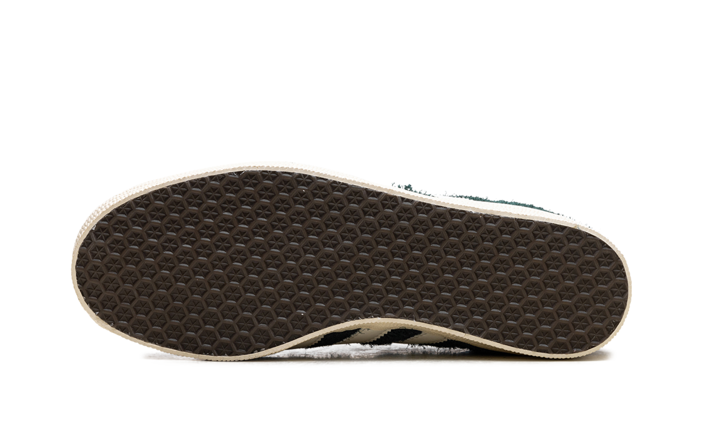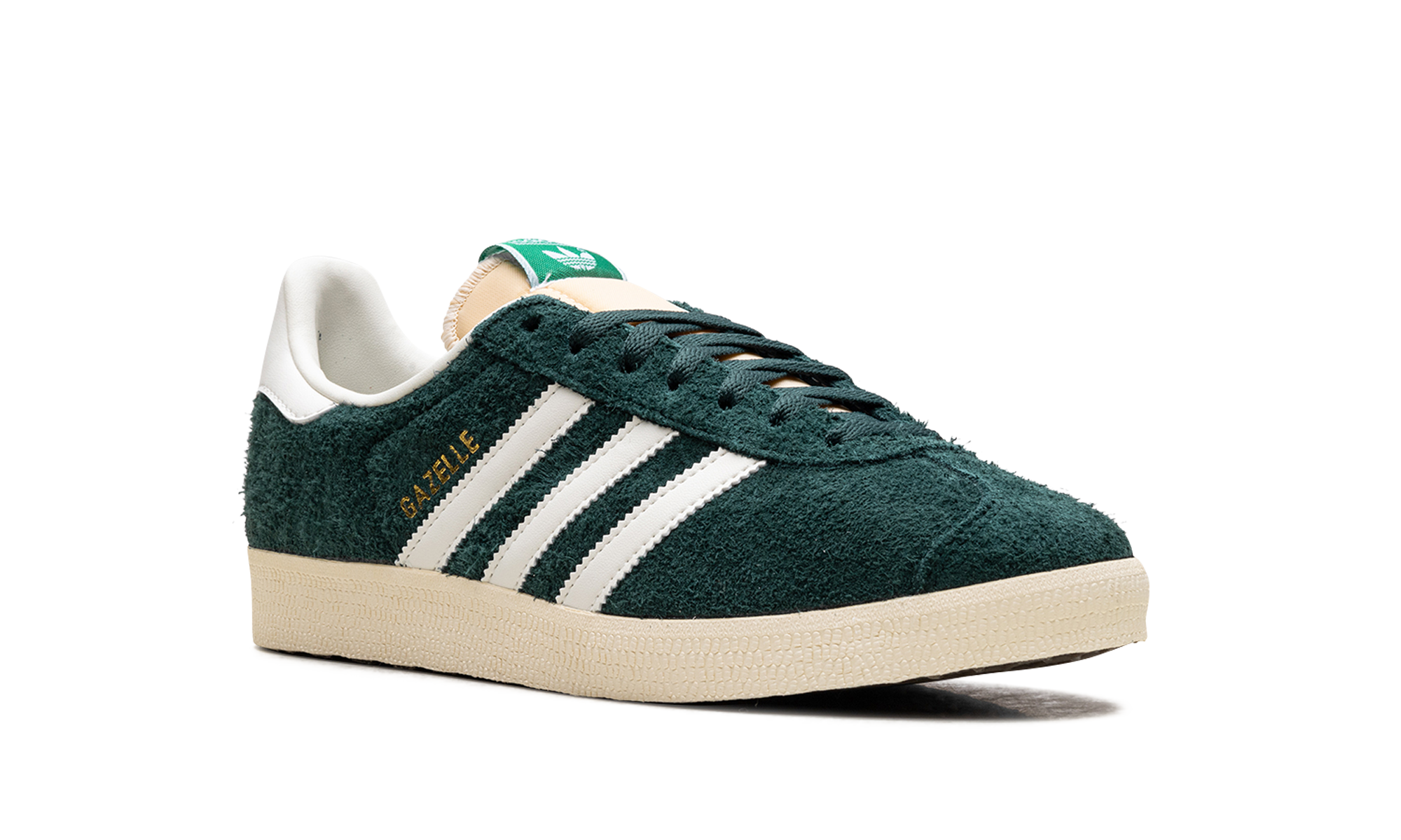 Walk in the footsteps of history with the Adidas Gazelle, an indoor classic redefined in the elegant "Mineral Green" colorway. This timeless icon honors the beloved 1991 version with a plush and supple suede upper and signature serrated 3-Stripes in contrasting off-white. The low-profile silhouette features an iconic T-toe and is grounded by a traditional rubber outsole, offering dependable grip. The eye-catching colors and gold foil 'Gazelle' lettering lend modern style to this retro favorite.
