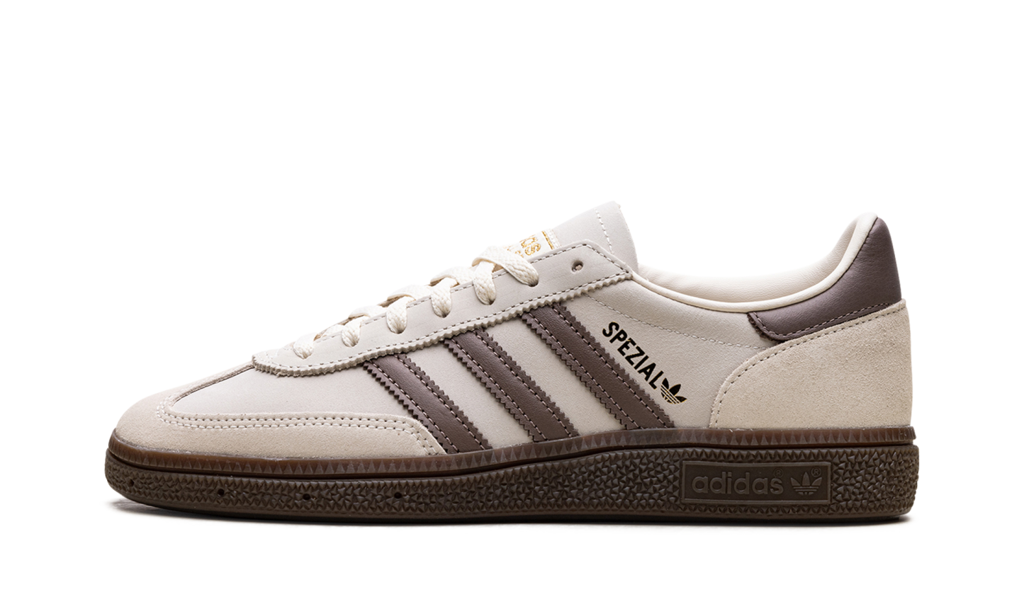 Prepare to step into a piece of sportswear history with the ADIDAS Handball Spezial Wmns "Brown Cream White". This iconic low-top, once an elite indoor handball shoe from 1979, is now a street-style champion for women. Its premium suede and leather upper offers a soft, luxurious feel in versatile, earthy tones. The classic T-toe design, serrated 3-Stripes, and durable gum rubber outsole blend vintage athletic heritage with modern, casual elegance. Slip into this legend and elevate any everyday outfit.