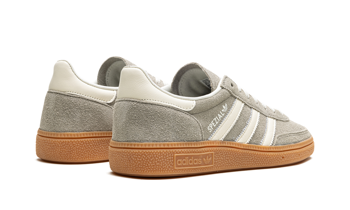 The Women’s adidas Handball Spezial “Silver Pebble” is a versatile, grey-based colorway of the casual sneaker. The upper is complete with a Silver Pebble hairy suede construction and Off White leather Three Stripes branding. Classic-looking Off White “Spezial” detailing can be found on the lateral side of the mid-panel. An Off White leather heel tab appears on the back of the shoe. “Adidas Spezial” branding is seen on the tongue. Underfoot, a gum rubber sole puts the finishing touches on the design.