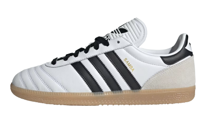 Own a piece of history with a fresh twist in the adidas Samba JP "Cloud White/Black/Gum". This Japan-exclusive take on the iconic indoor soccer shoe reloads its legacy with bold, refined details. It features a crisp Cloud White leather upper with an updated quilted vamp for texture, an extended tongue for retro flair, and classic Black serrated Three-Stripes. A gum rubber outsole keeps the low-profile look grounded and street-ready. It’s a clean, elevated edition of a forever-classic.
