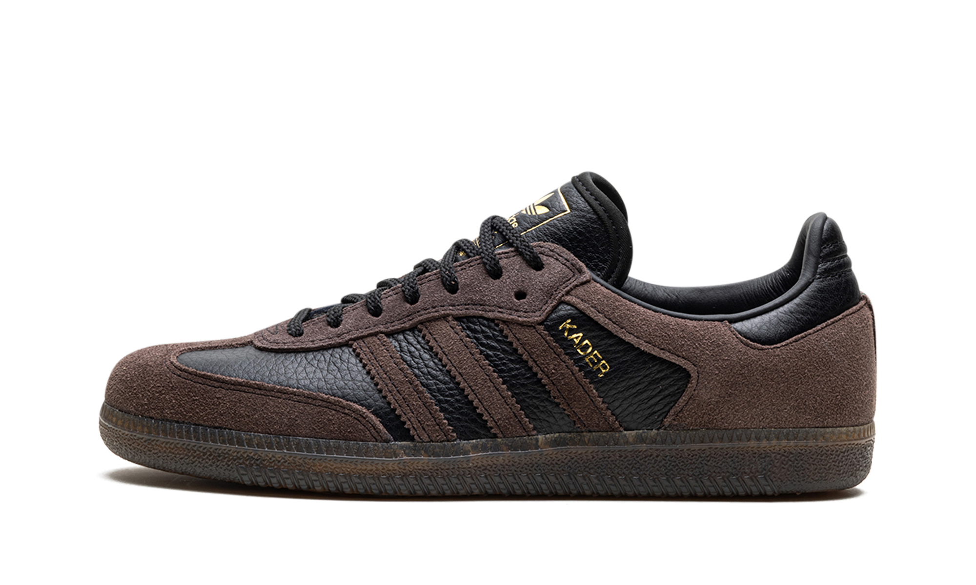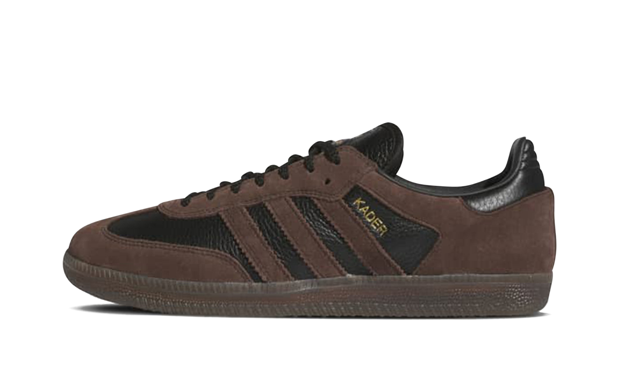 The adidas Samba ADV "Kader Sylla" is a collaboration between the professional skateboarder and adidas on a skate-ready version of the retro shoe. Modified specifically for skateboarding, the Samba ADV for Kader features a black tumbled leather base with brown suede overlays on the forefoot and heel, as well as on the Three Stripes branding. A “Kader” logo appears in gold foil next to the Three Stripes on the lateral side of the shoe. Underfoot, the gum rubber sole provides traction for optimal board feel or casual daily wear. Release date: February 10, 2024