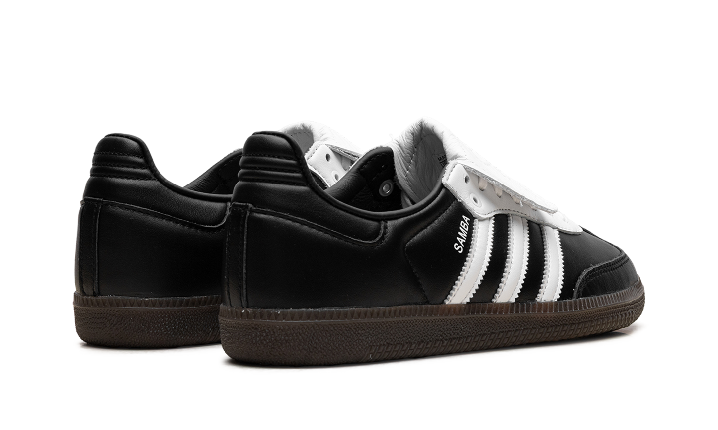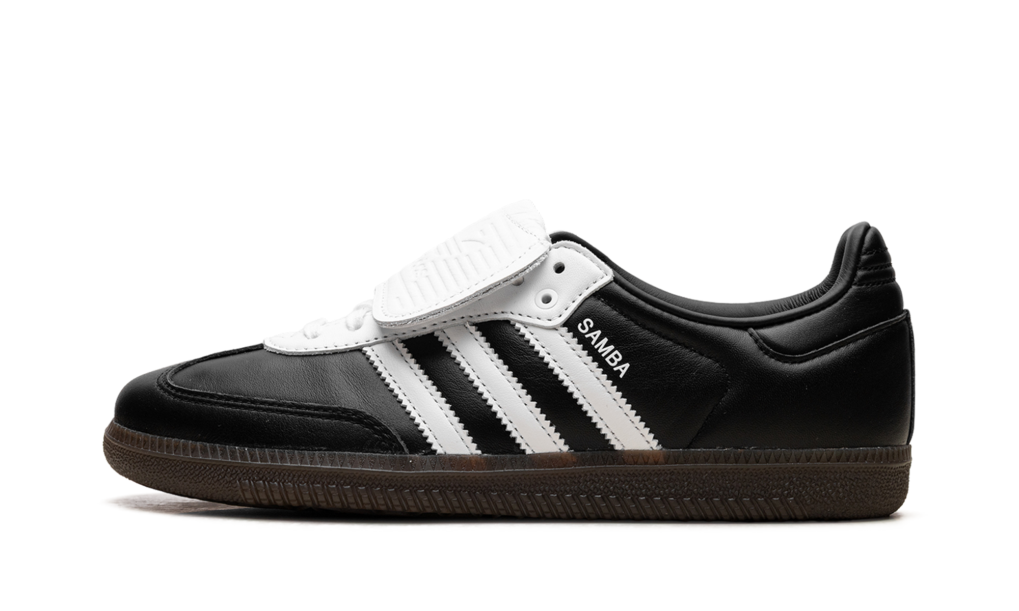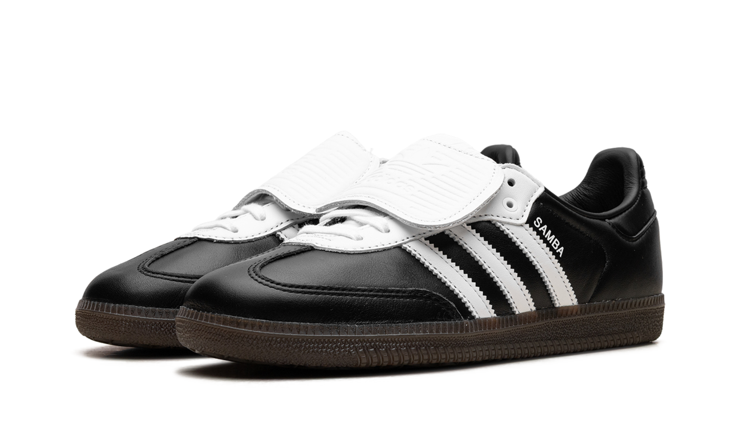 Experience the evolution of a legend with the adidas Samba LT "Core Black Cloud White" sneaker. This stylish update to the iconic Samba silhouette is a head-turner, featuring the classic full-grain black leather upper, serrated white 3-Stripes, and a suede T-toe. The most notable detail is the oversized, fold-over tongue, a bold nod to its football boot heritage that brings a sporty, fashion-forward edge. Finished with the signature gum rubber outsole for excellent grip, this sneaker is a timeless staple for any rotation.