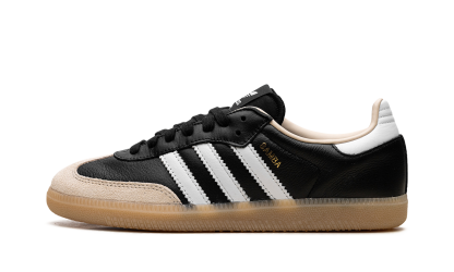 Own a piece of sneaker history with the adidas Samba OG in the essential 'Black Cream Gum' colorway. This iconic low-profile trainer, born on the indoor soccer pitch, features a smooth black full-grain leather upper complemented by the signature T-toe overlay in soft suede. The crisp, creamy-white serrated 3-Stripes and matching heel tab "pop" against the core black base, all riding atop the classic, grippy gum rubber outsole for timeless style and traction. Elevate any casual look with this streetwear staple.