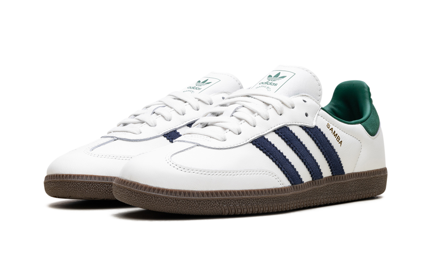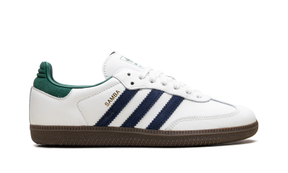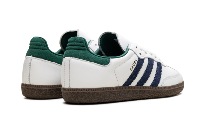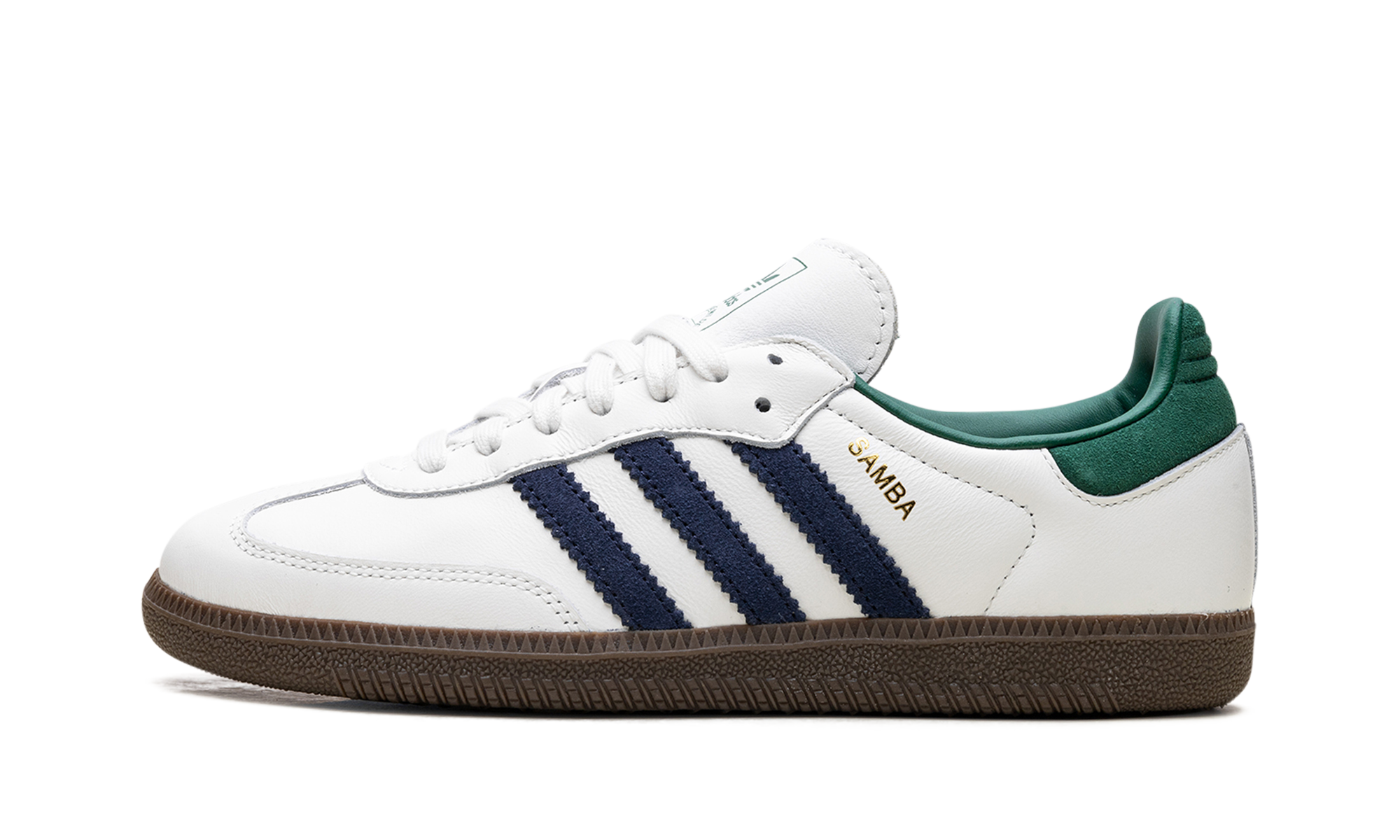 The Adidas Samba OG in Black White Collegiate Green offers a classic and versatile look. These iconic sneakers feature a timeless design with a black and white upper, accented by collegiate green details for a subtle pop of color. Perfect for everyday wear, the Samba OG combines heritage style with comfortable construction.