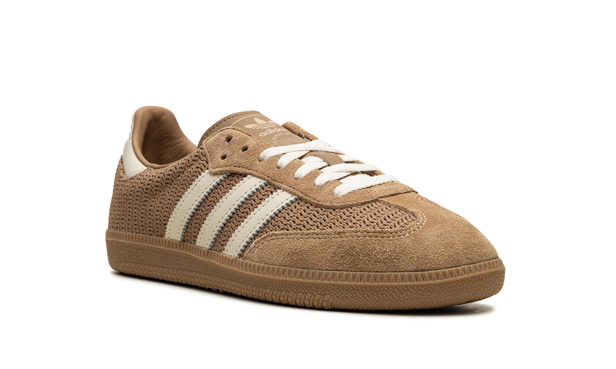 The adidas Samba OG "Cardboard" is a colorway of the retro shoe with a brown-based look inspired by the ‘70s leisure scene. The upper is made of an airy, lightweight Cardboard-colored mesh and contrasted with Chalk White leather Three Stripes on either side. More Chalk White accenting appears on the heel and laces. Classic “adidas” detailing can be found on the tongue. Underfoot, a thin Cardboard rubber sole completes the look of this versatile sneaker. Release date: April 1, 2024
