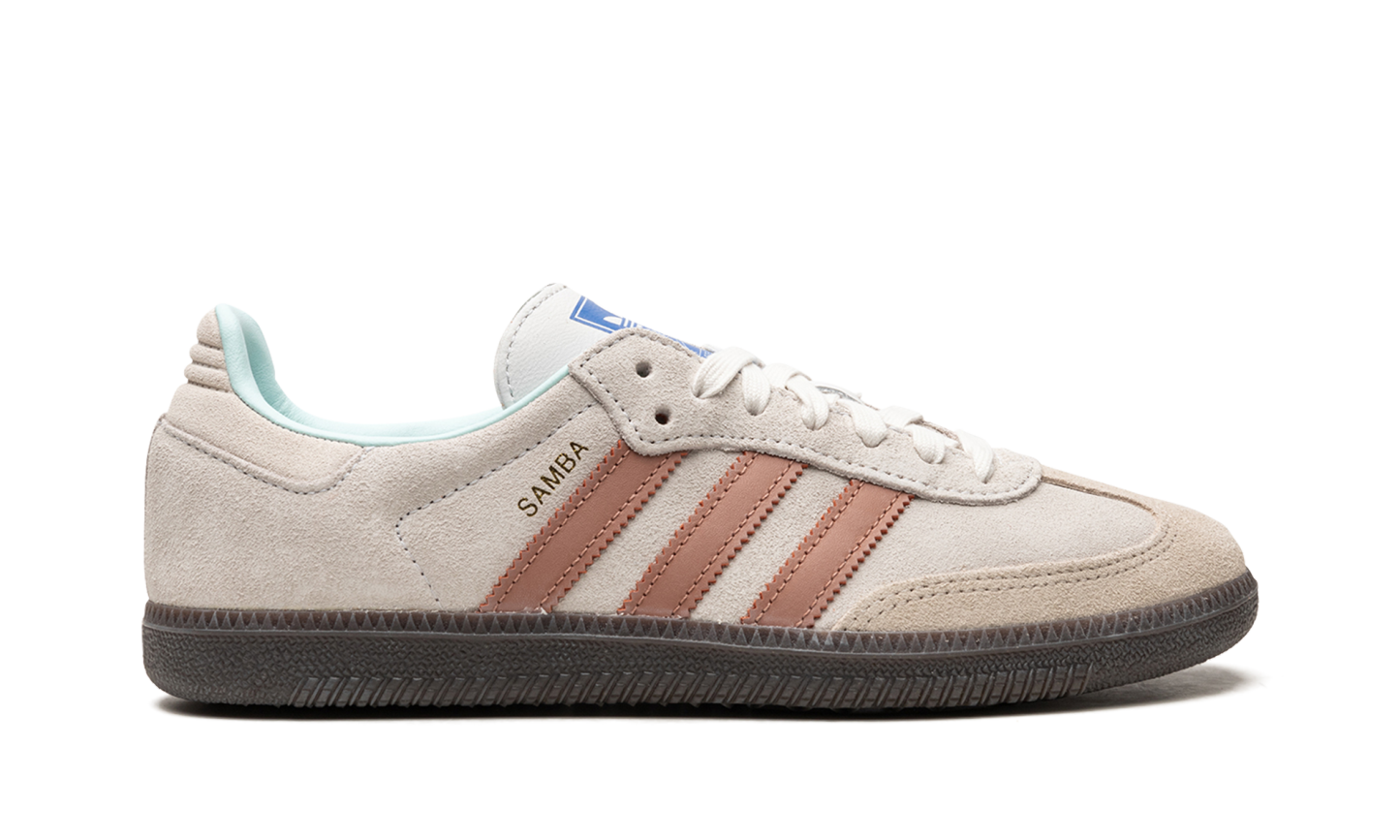 The adidas Samba “Crystal White/Clay” is a colorway of the retro soccer shoe with an earth tone design. The sneaker is complete with a beige-colored suede upper that features a slightly dark shade of beige suede on the toe overlay. The leather Three Stripes branding on the side is designed with a clay hue. A gold “Samba” logo appears on the lateral side of the mid-panel while classic “adidas Samba” branding is found on the tongue. A dark brown rubber sole puts the finishing touches on the colorway.