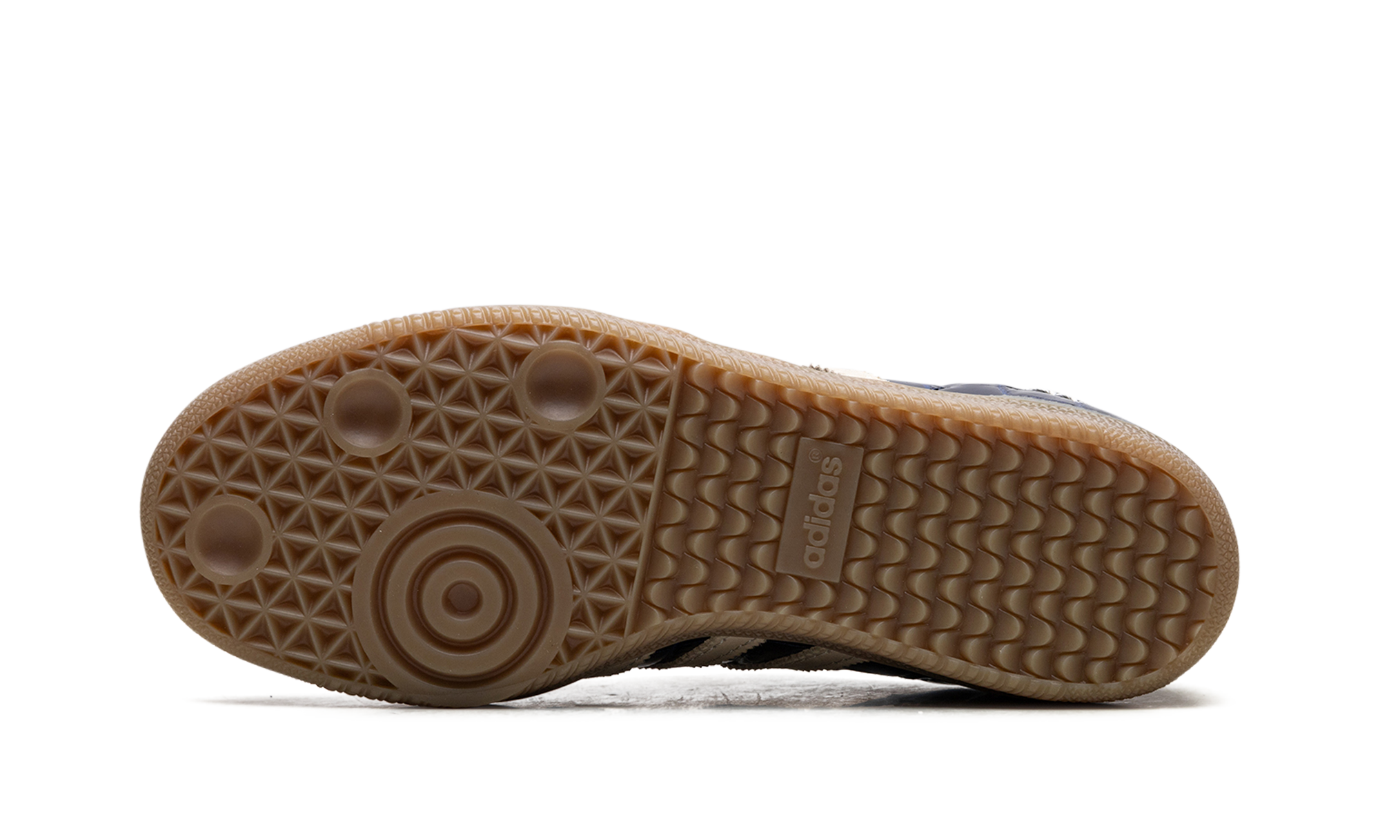The adidas Samba Wales Bonner "Navy Croc" elevates the classic Samba with a luxurious touch. Navy croc-embossed leather defines the upper, adding texture and depth. Cream three stripes and heel tab provide vintage contrast. Hand-stitched detailing along the midsole showcases Bonner's craftsmanship. A gum rubber sole balances retro and modern aesthetics. This collaboration blends sport and high fashion, embodying Wales Bonner's signature cultural fusion. The "Navy Croc" Samba is a standout piece, merging iconic design with artisanal details, appealing to both sneaker and fashion collectors.