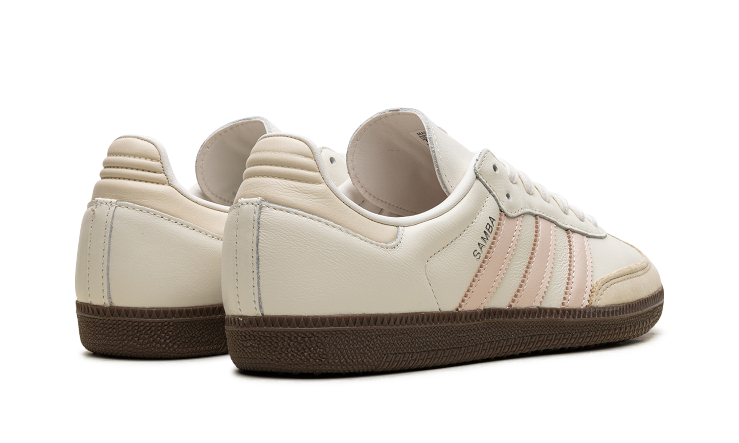 The Women’s adidas Samba OG “Wonder Quartz” is a women’s-exclusive colorway of the popular shoe with light pink details. The adidas Samba is one of the most coveted sneakers on the planet, as it is beloved for its comfort and timeless design. On the “Wonder Quartz,” the upper has an off-white leather construction with a beige leather overlay on the toe. Pastel pink leather Three Stripes branding appears on the sides, while a “Samba” logo can be seen on the lateral side of the mid-panel. A dark gum rubber sole completes the look.