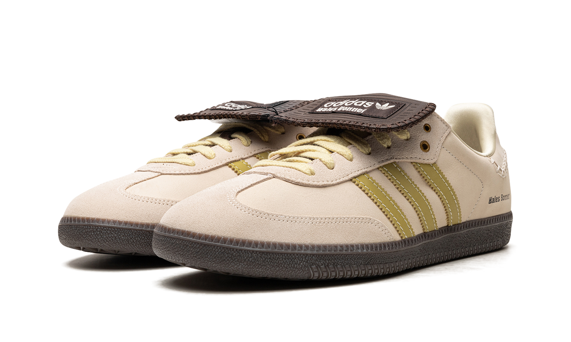 The Wales Bonner x adidas Samba “Cream/Yellow” is a collaboration between the fashion designer and adidas on the popular sneaker that shows appreciation for the model’s soccer heritage. One of several colorways of the adidas Samba by Grace Wales Bonner, this edition features a light brown leather construction with tonal suede on the toe. A mustard-like shade of yellow appears on the leather Three Stripes on the sides and a “Wales Bonner” logo is found on the lateral side of the heel. The shoe’s fold-over tongue is an acknowledgment to the Samba’s original appearance. A dark gum rubber sole completes the look.