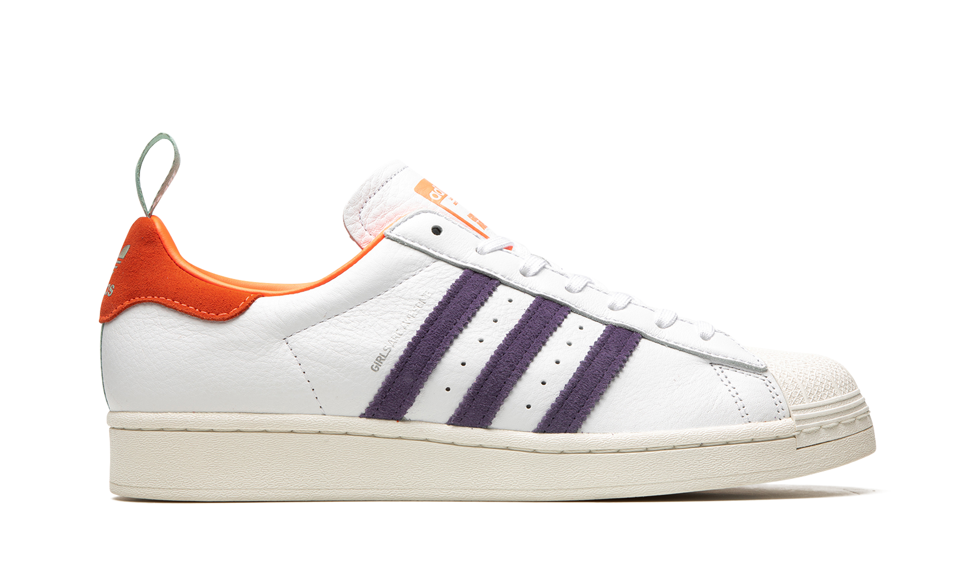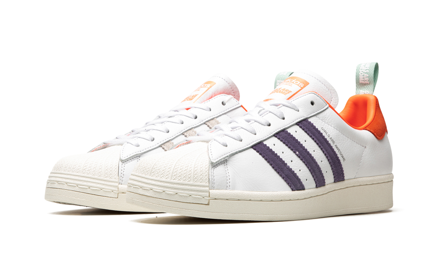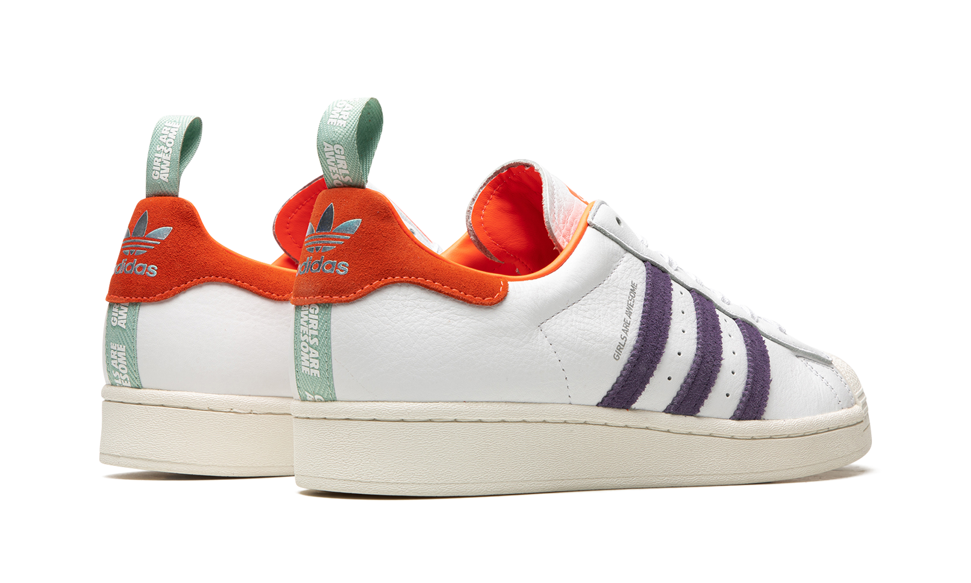 The Superstar 'Girls Are Awesome' shoe features a design in collaboration with Girls Are Awesome, offering a vibrant and empowering take on the classic Superstar silhouette.