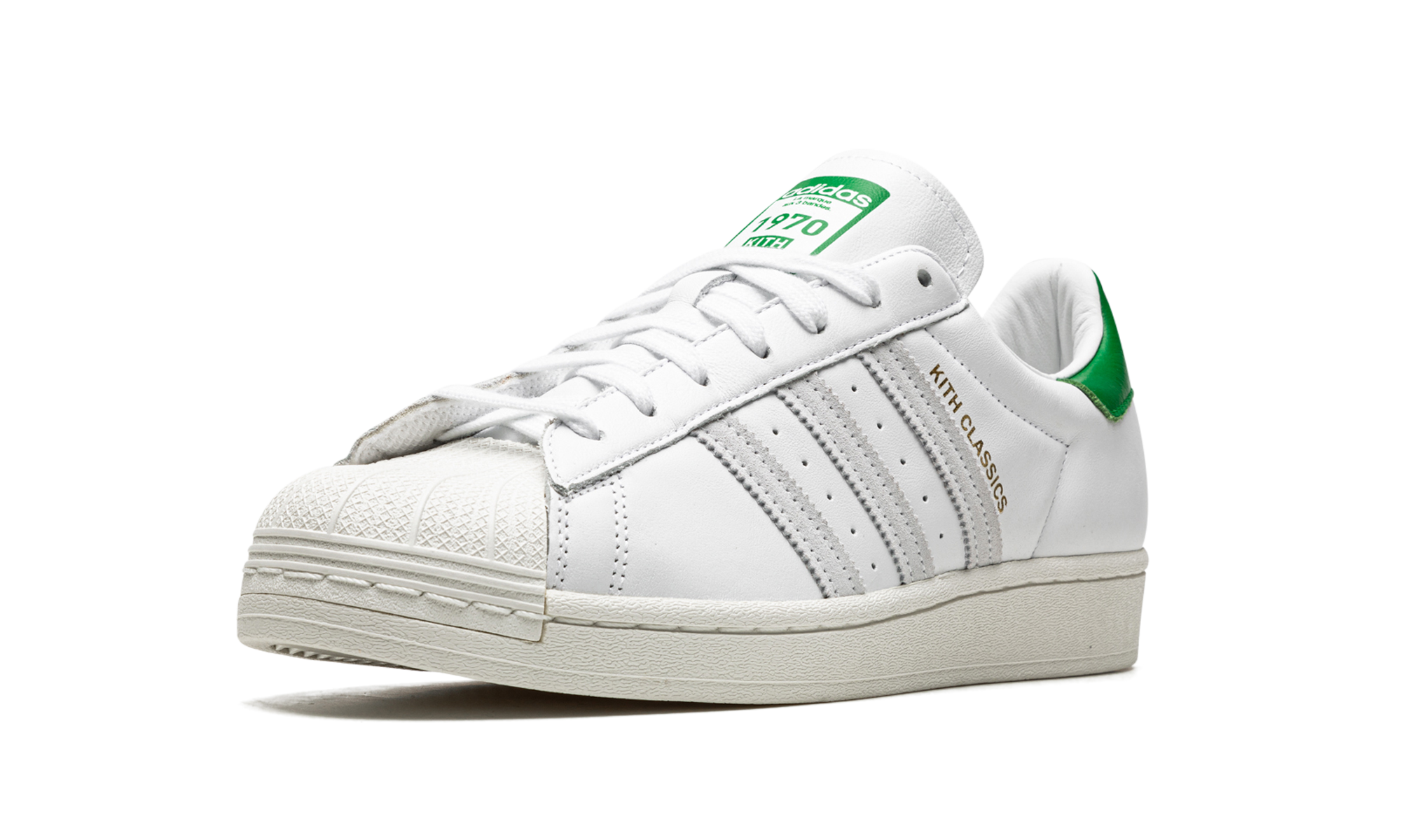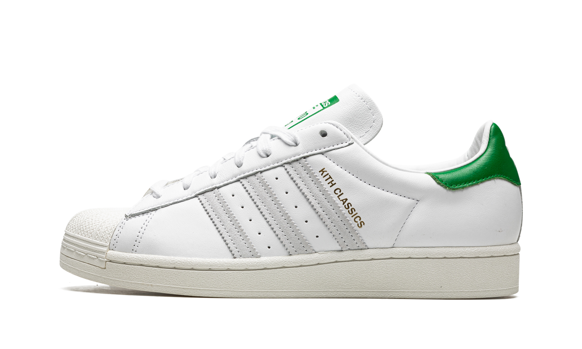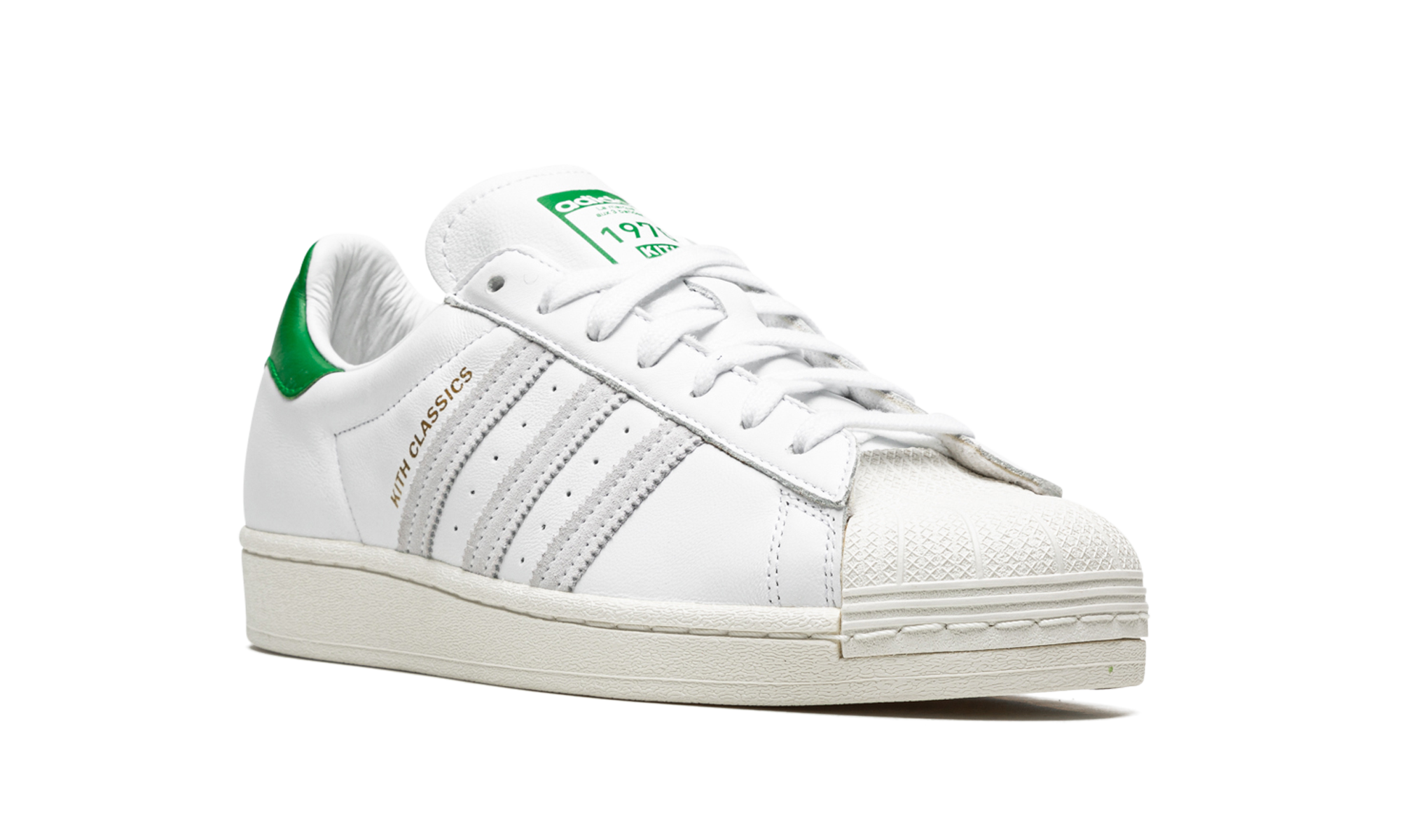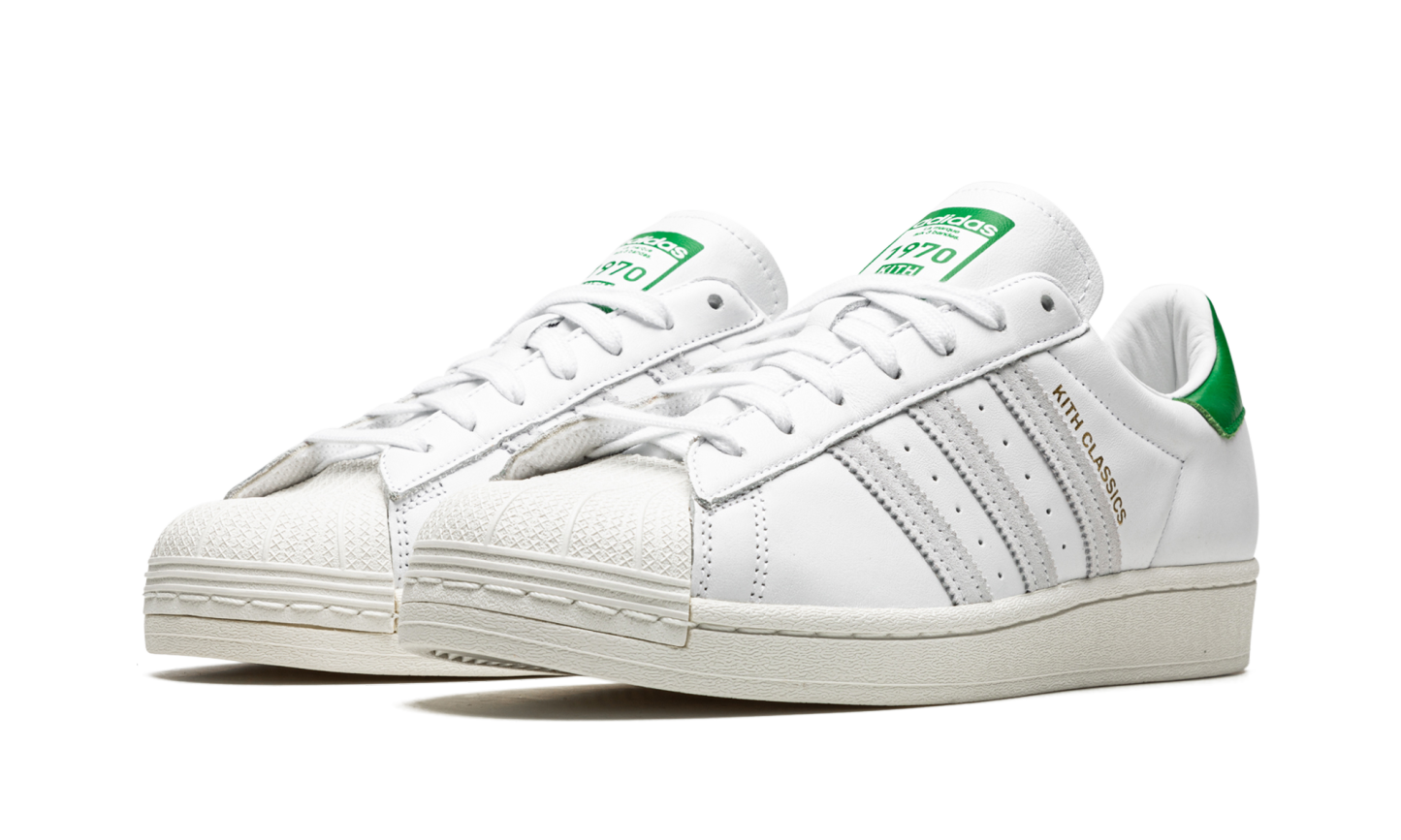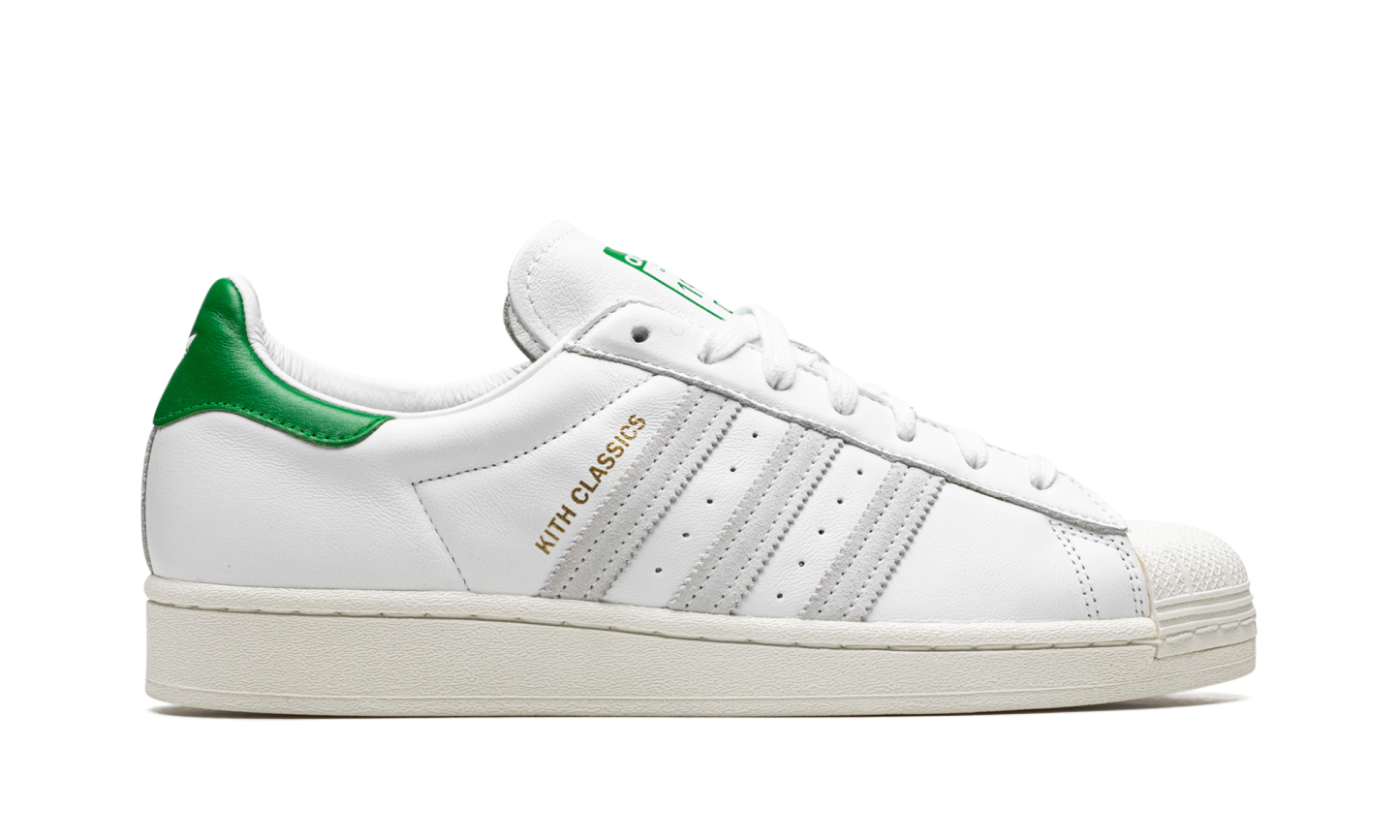 The Superstar 'Kith' shoe features a classic design, offering a versatile and timeless addition to any sneaker collection.