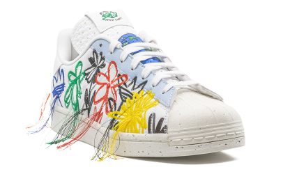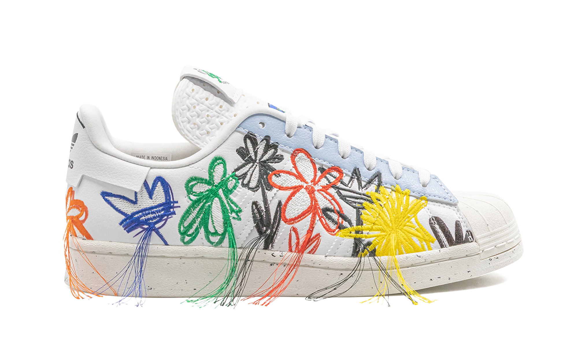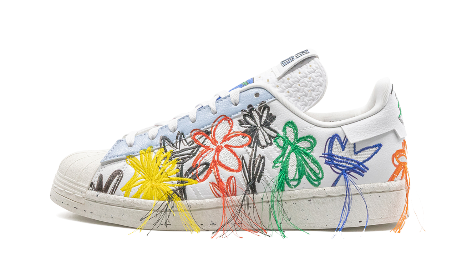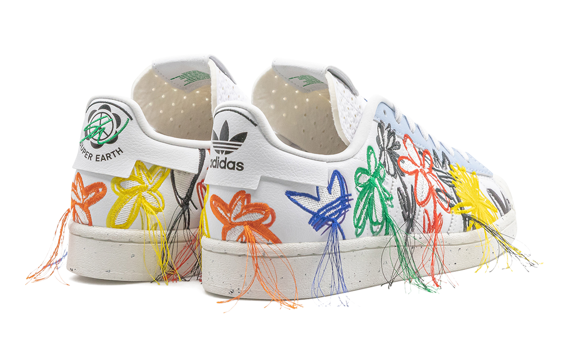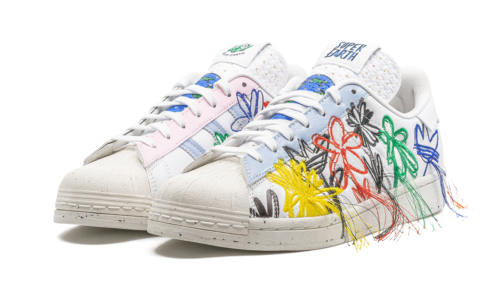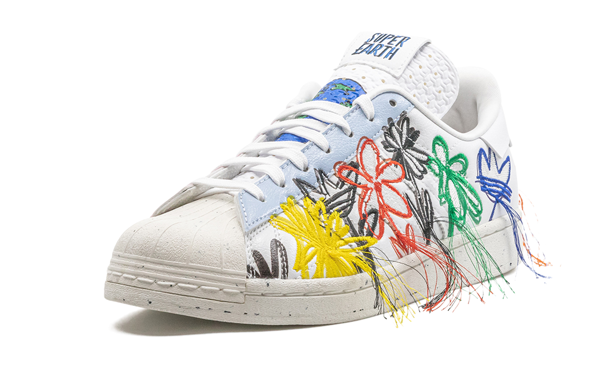 The Superstar Superearth 'Sean Wotherspoon' shoe features a unique design by Sean Wotherspoon, incorporating sustainable materials and vibrant colors for a distinctive and eco-conscious take on the classic Superstar.