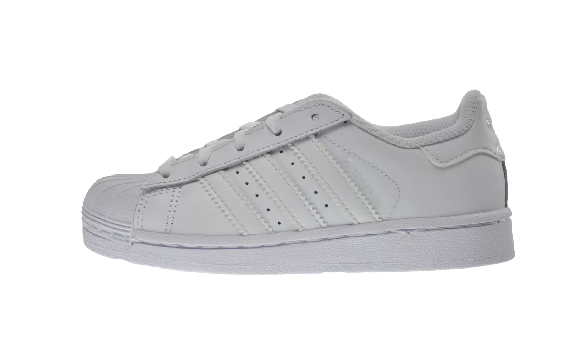 The Superstar 'Triple White' shoe features a classic all-white design, offering a clean and versatile look.