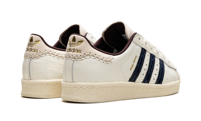 The Superstar 'Wales Bonner - White Croc' shoe blends classic Adidas Superstar style with a unique croc-embossed design, offering a sophisticated and distinctive look.