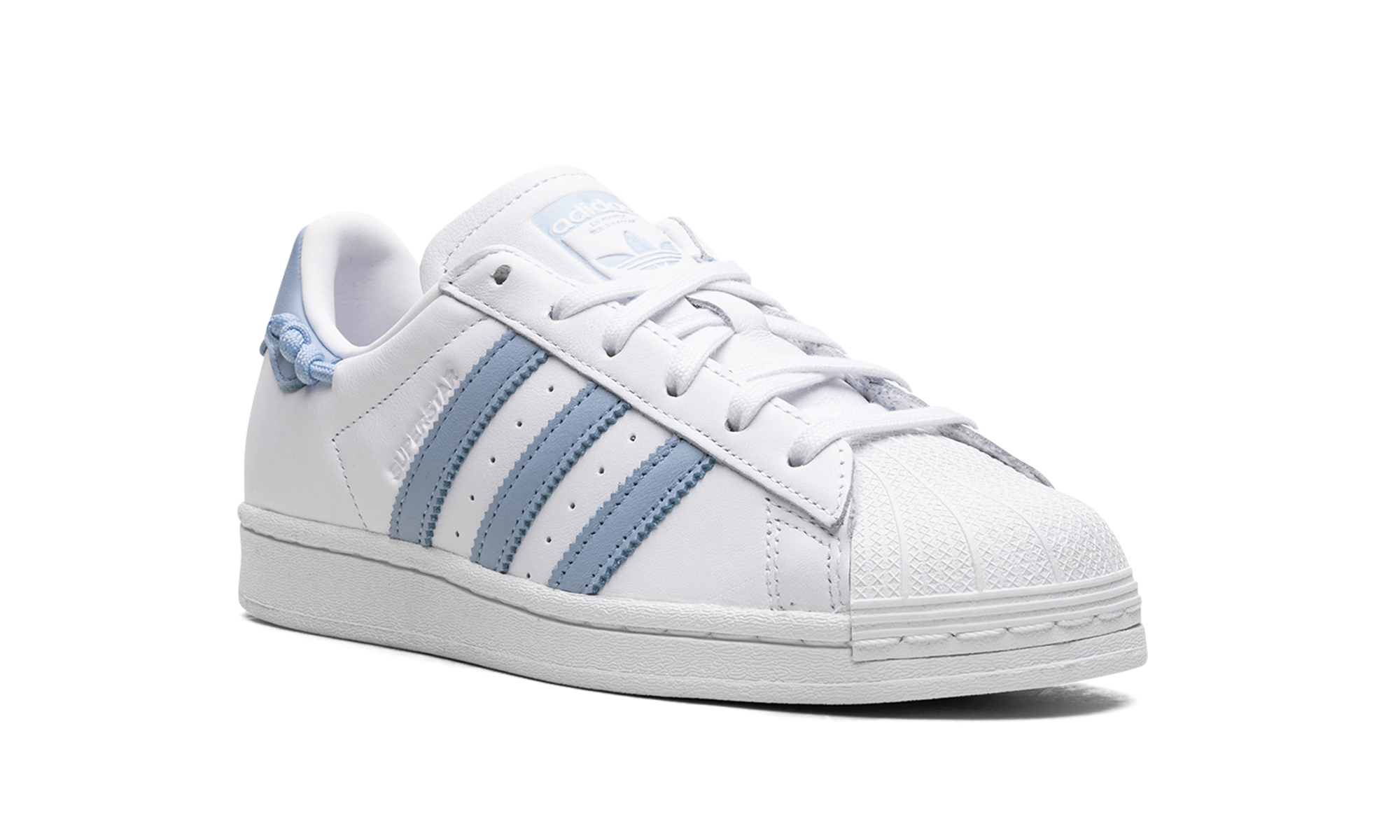 The Superstar WMNS 'Sky Blue' shoe features a classic design in a vibrant sky blue colorway, making it a versatile and stylish addition to any sneaker collection.