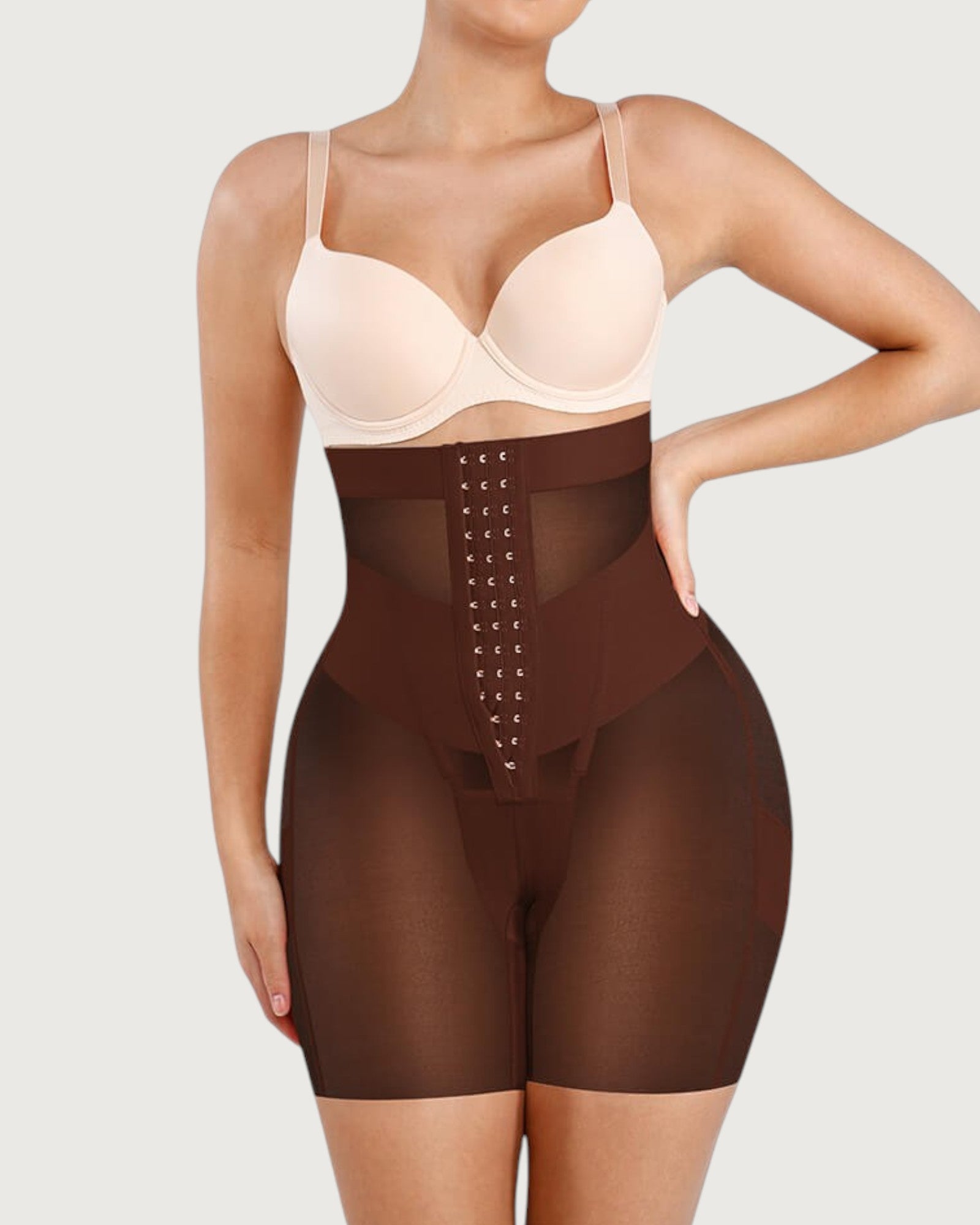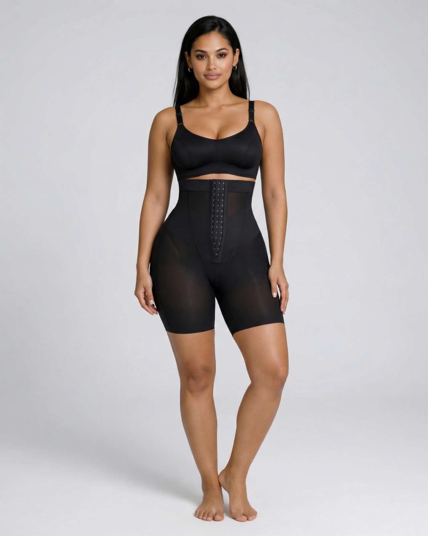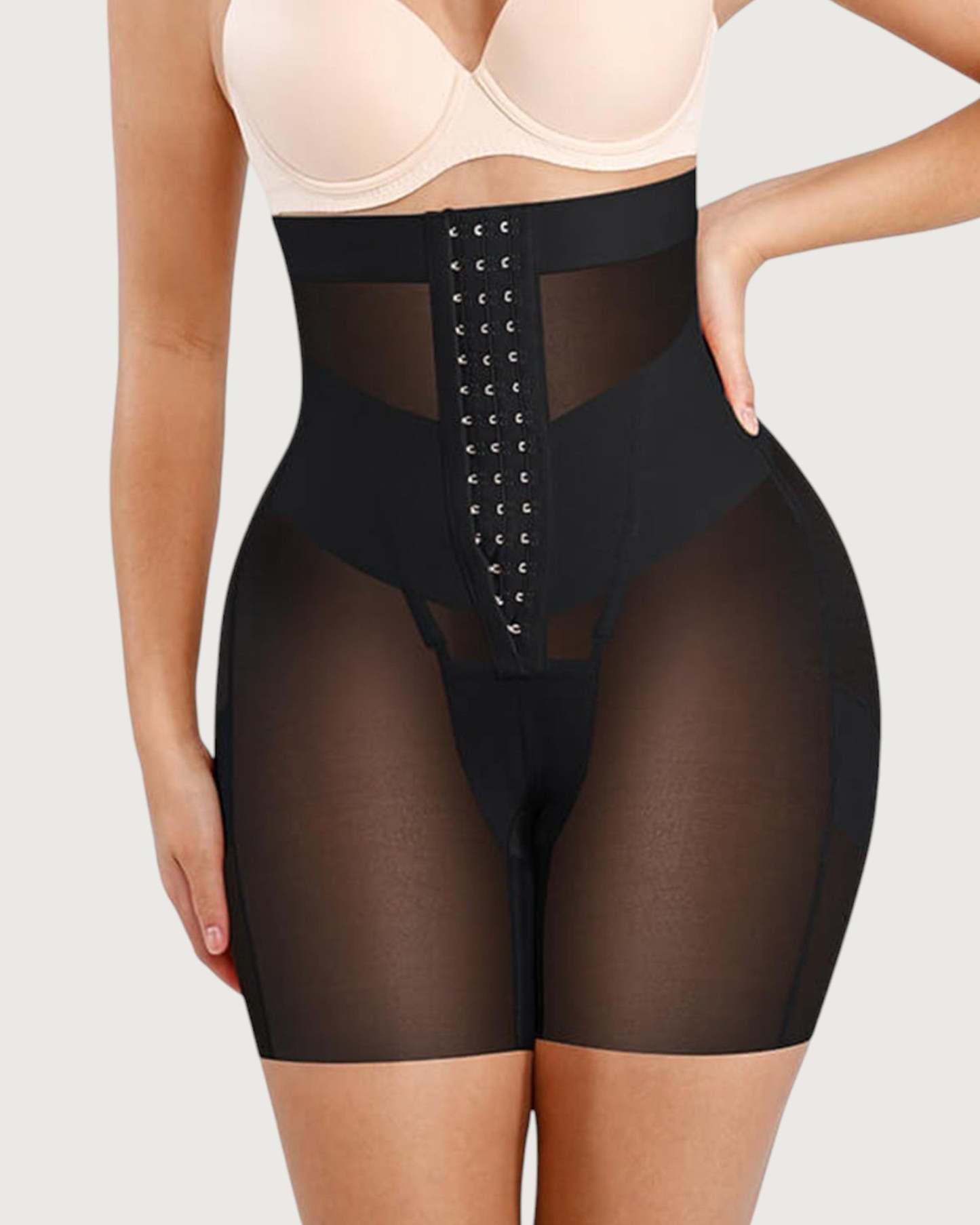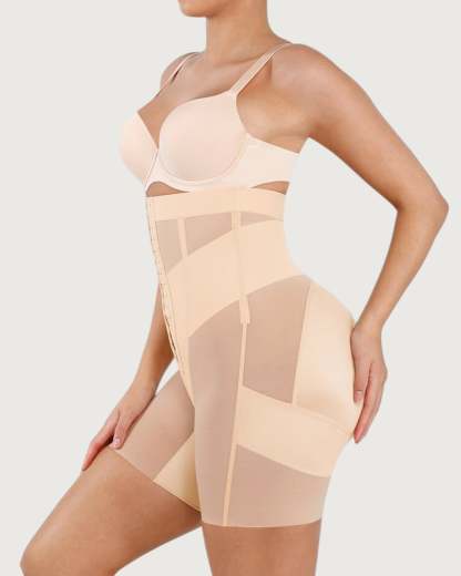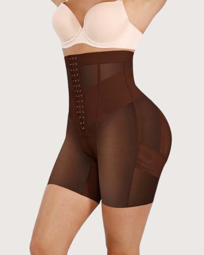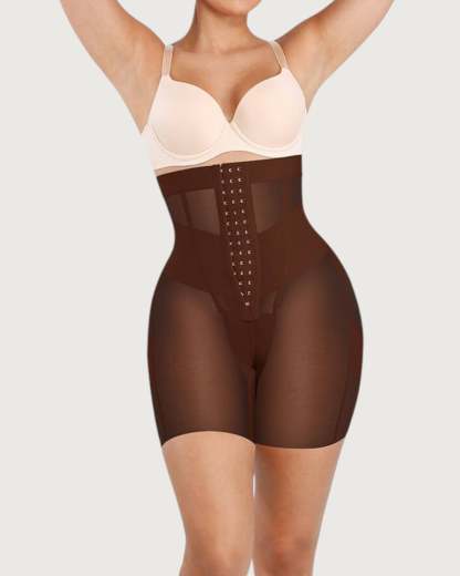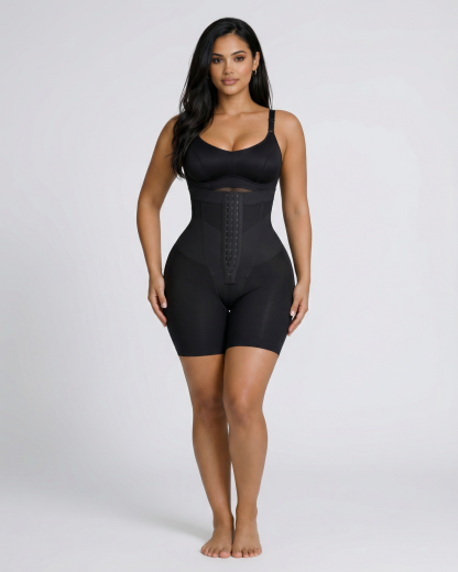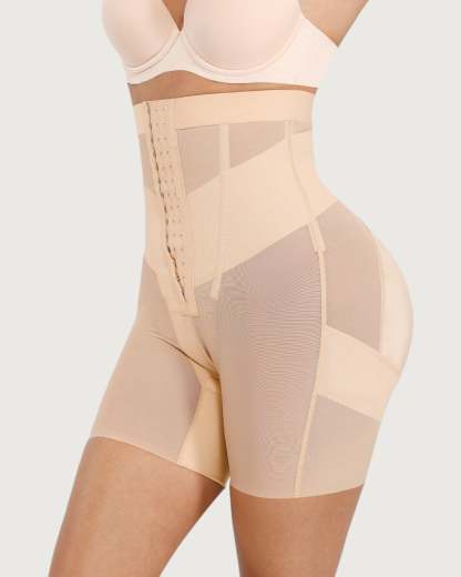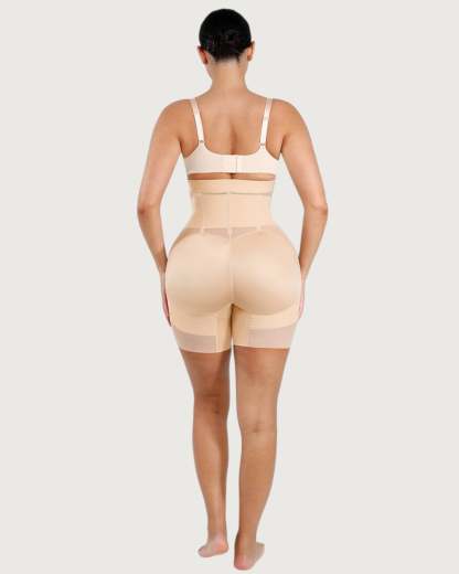 Sculpt and define your silhouette with our Celine High-Waist Mid-Thigh Short. Designed for powerful tummy control and waist shaping, these high-waisted shorts smooth your abdomen and enhance your curves for a flawless, contoured look. Featuring a triple-row hook and eye closure for a customizable fit, double-layered tummy panel for extra compression, and boning for waist cinching, these shorts offer maximum support and comfort. Built-in butt-lifting bands provide a natural lift, while the anti-slip waistband keeps everything in place. Perfect under dresses, jeans, or formal wear - your secret weapon for everyday shaping or special occasions.