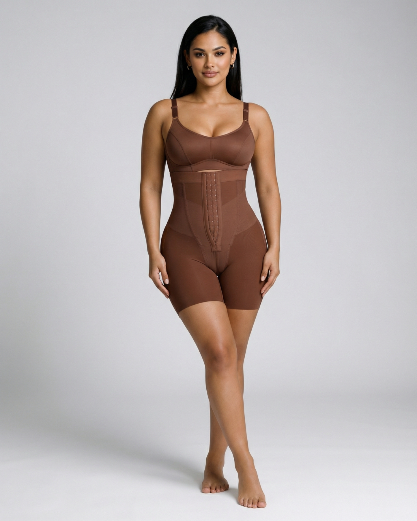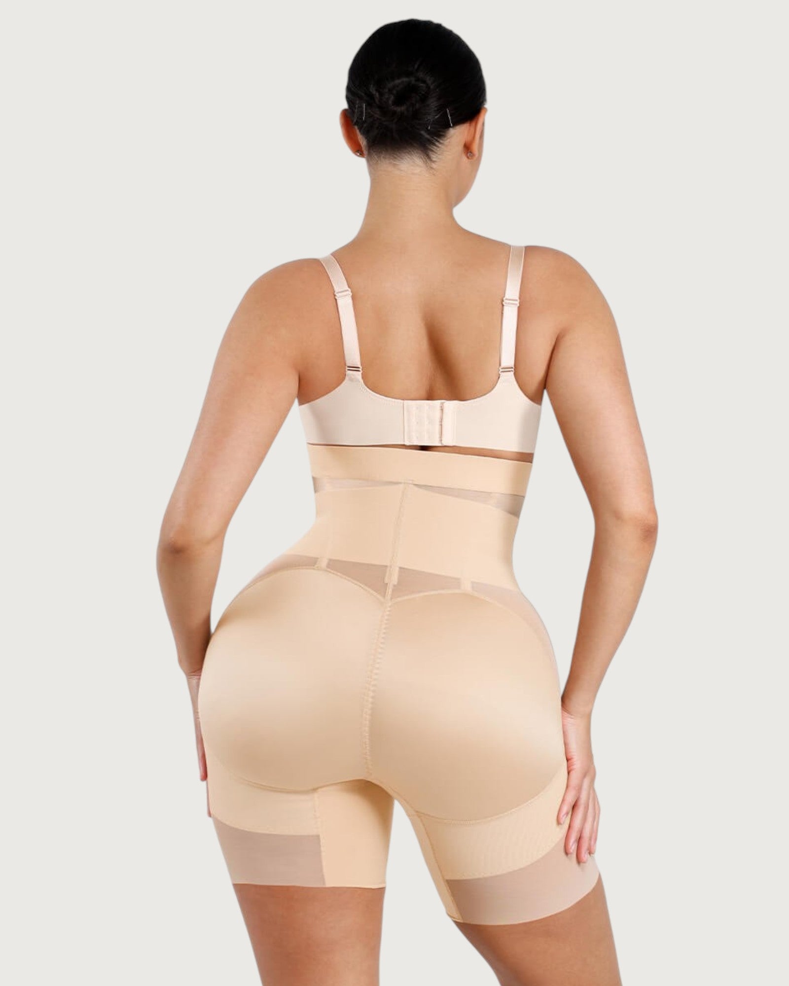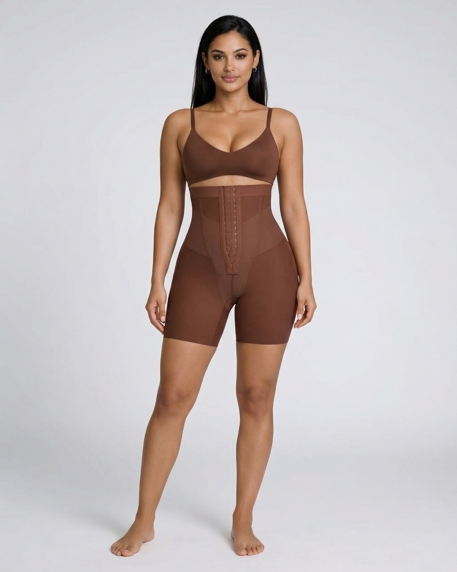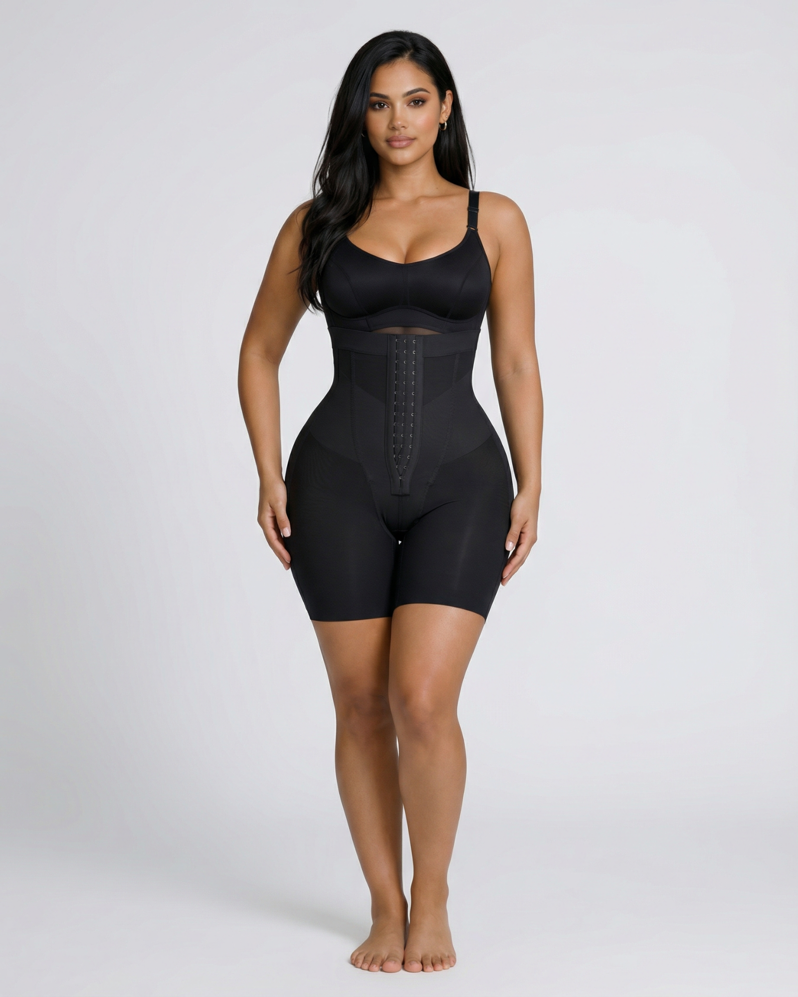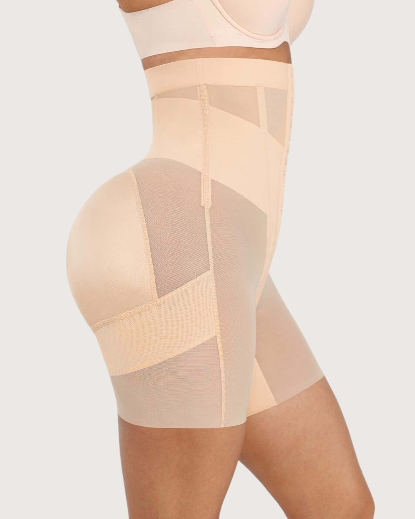 Sculpt and define your silhouette with our Celine High-Waist Mid-Thigh Short. Designed for powerful tummy control and waist shaping, these high-waisted shorts smooth your abdomen and enhance your curves for a flawless, contoured look. Featuring a triple-row hook and eye closure for a customizable fit, double-layered tummy panel for extra compression, and boning for waist cinching, these shorts offer maximum support and comfort. Built-in butt-lifting bands provide a natural lift, while the anti-slip waistband keeps everything in place. Perfect under dresses, jeans, or formal wear - your secret weapon for everyday shaping or special occasions.