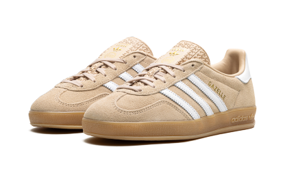 The Women’s adidas Gazelle Indoor “Magic Beige” is a women’s-exclusive colorway of the casual shoe with a mostly beige appearance. An easy-wearing option for women, the adidas Gazelle Indoor “Magic Beige” features a Magic Beige suede construction with tonal overlays on the toe and eyelets. White leather Three Stripes branding can be found on the sides and a white leather overlay appears on the heel. Gold “Gazelle” branding is stamped on the lateral side of the mid-panel. A gum rubber sole completes the look.