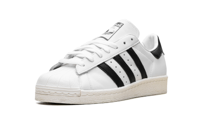 The Superstar 82 'White' shoe features a classic design with a clean white aesthetic, offering a versatile and timeless addition to any sneaker collection.