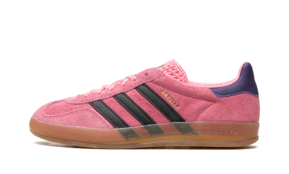 The Women’s adidas Gazelle Indoor “Bliss Pink/Purple” is a women’s colorway of the retro indoor soccer sneaker with a can’t-miss appearance. The adidas Gazelle Indoor in “Bliss Pink/Purple” features a Bliss Pink suede construction with a tonal suede overlay on the toe. Contrasting black leather Three Stripes and gold “Gazelle” branding can be seen on the side of the shoe. A purple leather heel tab adds a contrast of color to the shoe’s mostly pink upper. Underfoot, a semi-translucent gum rubber sole completes the design.