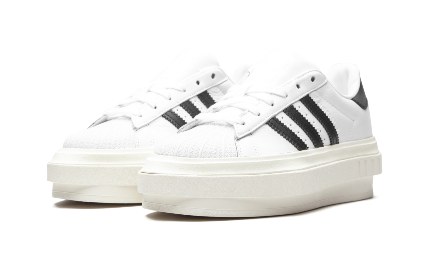 The Ivy Park x adidas Superstar Platform is one of several designs remixed by Beyonce for her extremely popular collaboration with adidas that was released in fall 2020. The Superstar Platform is an elevated look for the classic silhouette that features a platform sole that adds significant height to the shoe. As for the rest of the design, the Ivy Park edition of the Superstar keeps a similar appearance to the original adidas model, including a white leather base with a tonal rubber shell toe. Embossed white Superstar branding appears next to the classic black leather Three Stripes detailing on the lateral side of the shoe. A shiny adidas trefoil is located on the black leather heel tab. Release date: October 30, 2020.